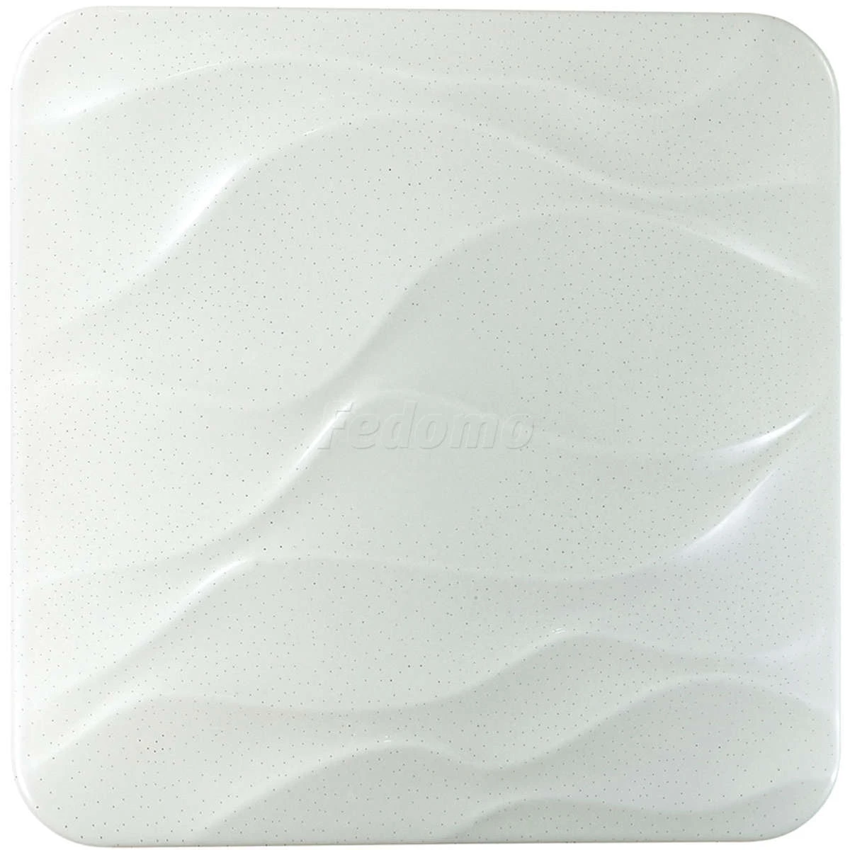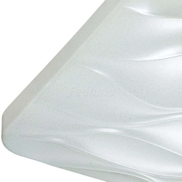 Материалы исполнения База - металл. Плафон - декорированный пластик. Цвет арматуры белый. Плафон в цвете: белый. Особенность: заменяемый LED модуль. Декор рельеф в виде волны, материал декора пластик, цвет белый. Светильник 2091/CL серии RICON cостоит из металлического основания (базы) и пластикового рассевателя. Материал рассеивателя - высококачественный акрил белого матового цвета, обеспечивающий светильнику равномерное рассеивание и хорошее светопропускание. Форма плафона: квадратная, с рельефным орнаментом в виде волны, декорирована прозрачными точками, придающими включенному светильнику красивый эффект "звездного мерцания" и переливания. Степень защиты IP43 позволяет использовать светильник в определенных зонах влажных помещений. В комплект входит заменяемый LED модуль с линзами, мощностью 28Вт, которая соответствует лампе накаливания 200Вт. Источник света имеет комфортную цветовую температуру 4000К (белый свет). Наименование 2091/CL SN 017 св-к RICON пластик LED 28Вт 4000К 330*330 IP43.