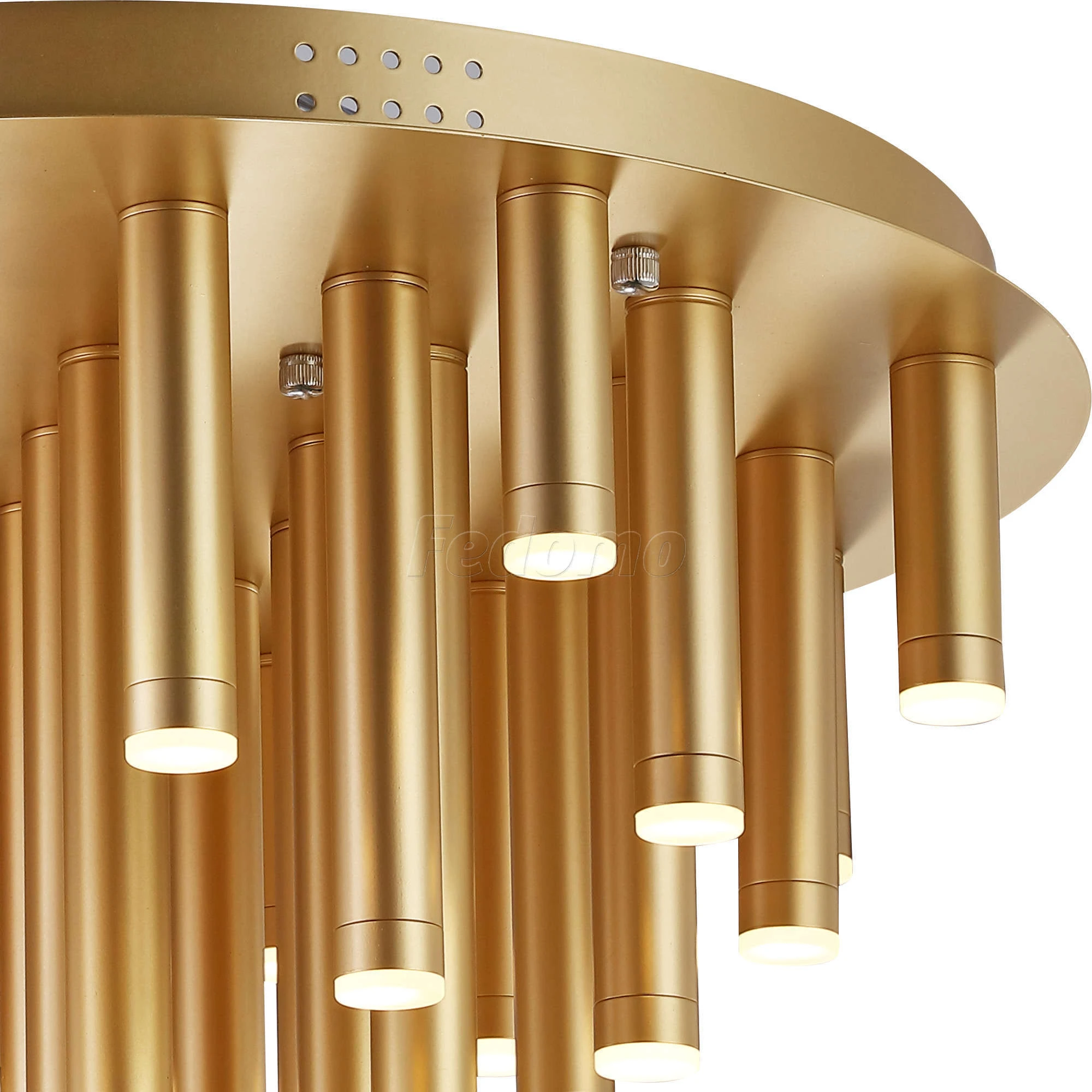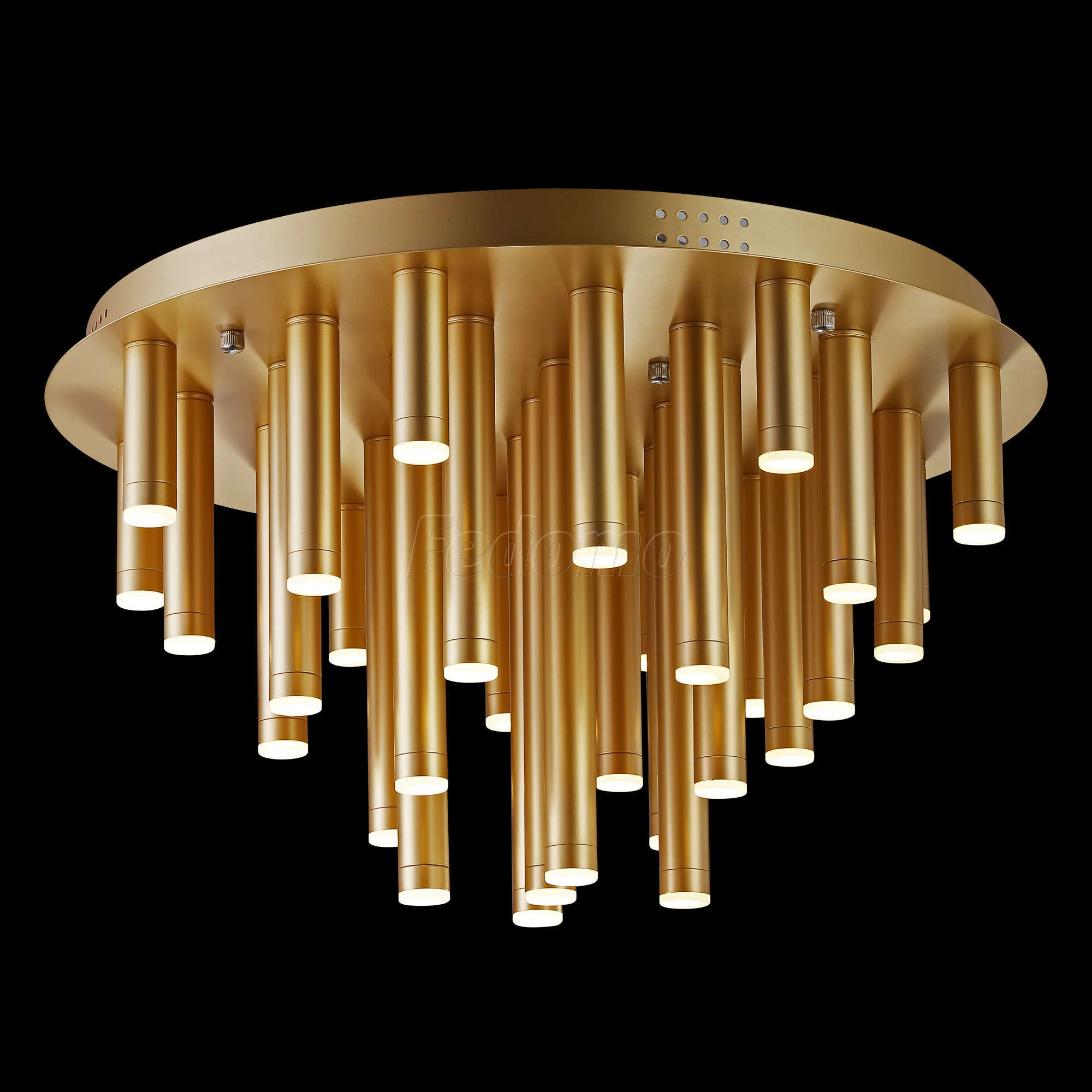 Люстра потолочная 2104-33U из серии Organ от компании Favourite устанавливается на монтажную пластину. Люстра прекрасно подойдет в качестве источника основного света для гостиной, спальни, кабинета, офиса, оформленных в стиле модерн, арт-деко, техно. Основной цвет модели - золото, материал арматуры - металл. Люстра имеет 33 плафона со свечением вниз, материал изготовления - матовый металл. Светодиодная модель с цоколем LED (33xLED), имеет 33 лампочки с общей мощностью 66W и напряжением 220V. Светильник имеет цветовую температуру 3000К. Габариты: высота - 500 мм, диаметр - 600 мм. В комплекте есть лампочки. Лучшая цена и условия доставки на Favourite 2104-33U в интернет-магазине Fedomo.ru.
