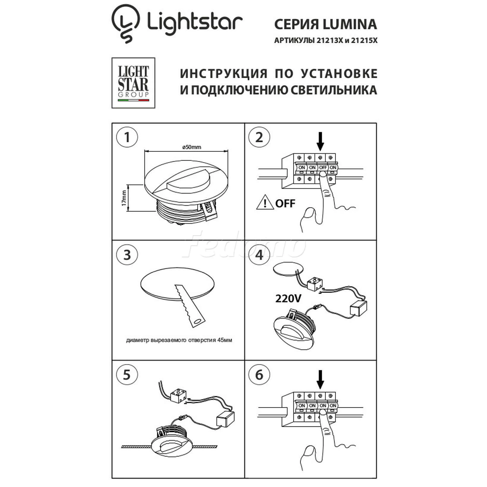 Подсветка для лестниц и ступеней встраиваемая светодиодная Lightstar Lumina 212137 от итальянского производителя Lightstar исполнена в черном цвете из металла. Модель имеет плафон из металла и пластика и подходит для размещения на потолке в гостиной, кафе, холле, кухне, магазине, офисе, спальне в стиле модерн. Диоды обладают мощностью 1W, цветовой температурой 3000К и освещают площадь до 1 кв. м. Световой поток 60 лм. Питание от сети 220V. Монтаж производится на прижимной механизм. Срок службы ламп составит не менее 20000 ч. Высота — 10 мм, диаметр — 50 мм. Заказывайте Lightstar 212137 онлайн по низкой цене с гибкими условиями доставки на Fedomo.ru!