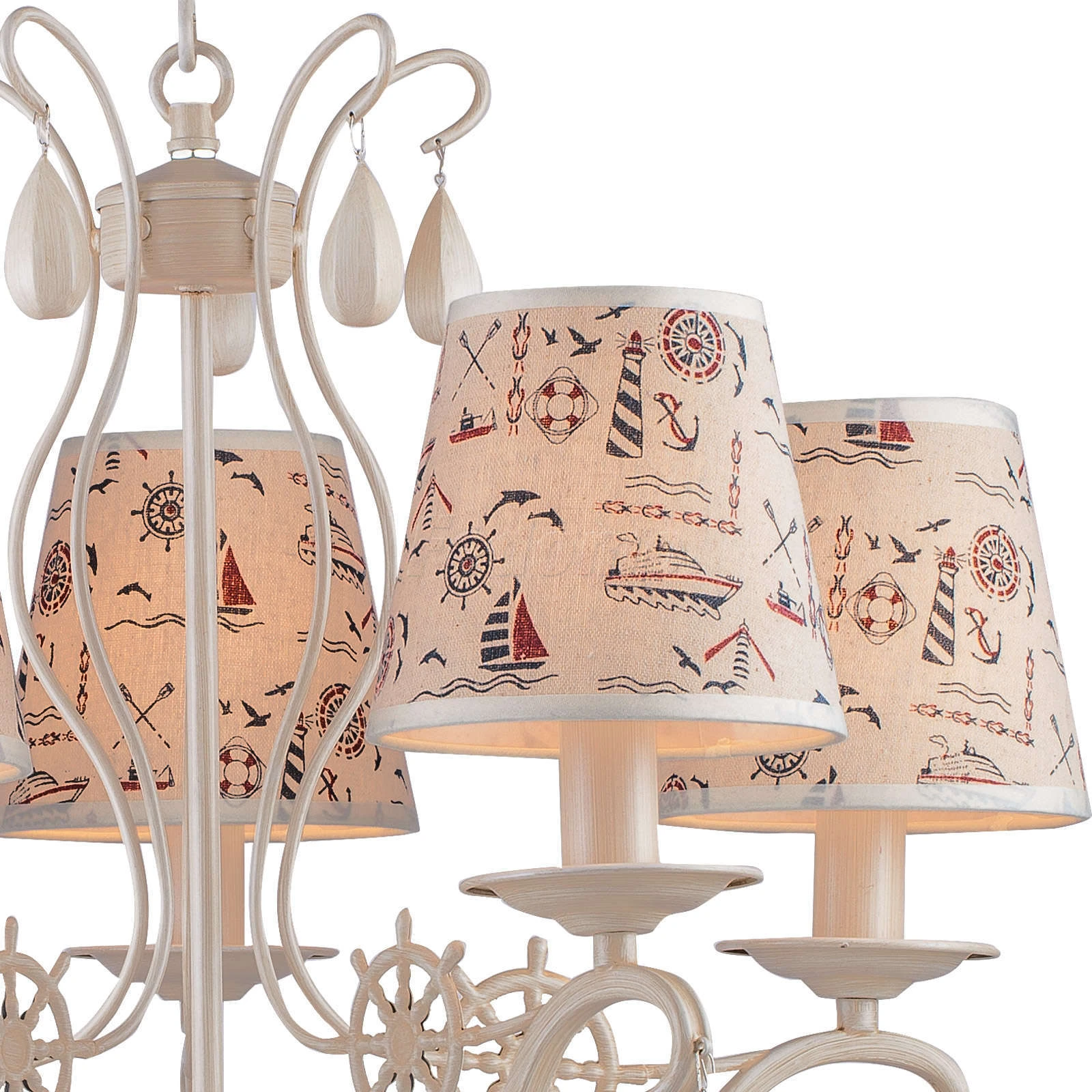 Люстра подвесная для детской 2133-5P из серии Avventura от компании F-Promo регулируется по высоте и устанавливается на монтажную пластину. Люстра со штурвалом и кораблем украшена гипсовыми подвесками бежевого цвета и прекрасно подойдет в качестве источника основного света для гостиной, кафе, спальни, оформленных в стиле прованс, кантри, морской. Основной цвет модели - бежевый, материал арматуры - металл. Люстра имеет 5 абажуров со свечением вверх, материал изготовления - матовая ткань. Модель оснащена цоколем E14 (5xE14), имеет 5 лампочек с общей мощностью 200W и напряжением 220V. Светильник поддерживает подключение диммера. Габариты: диаметр - 570 мм. Лампочки в комплект не входят. Лучшая цена и условия доставки на F-Promo 2133-5P в интернет-магазине Fedomo.ru.