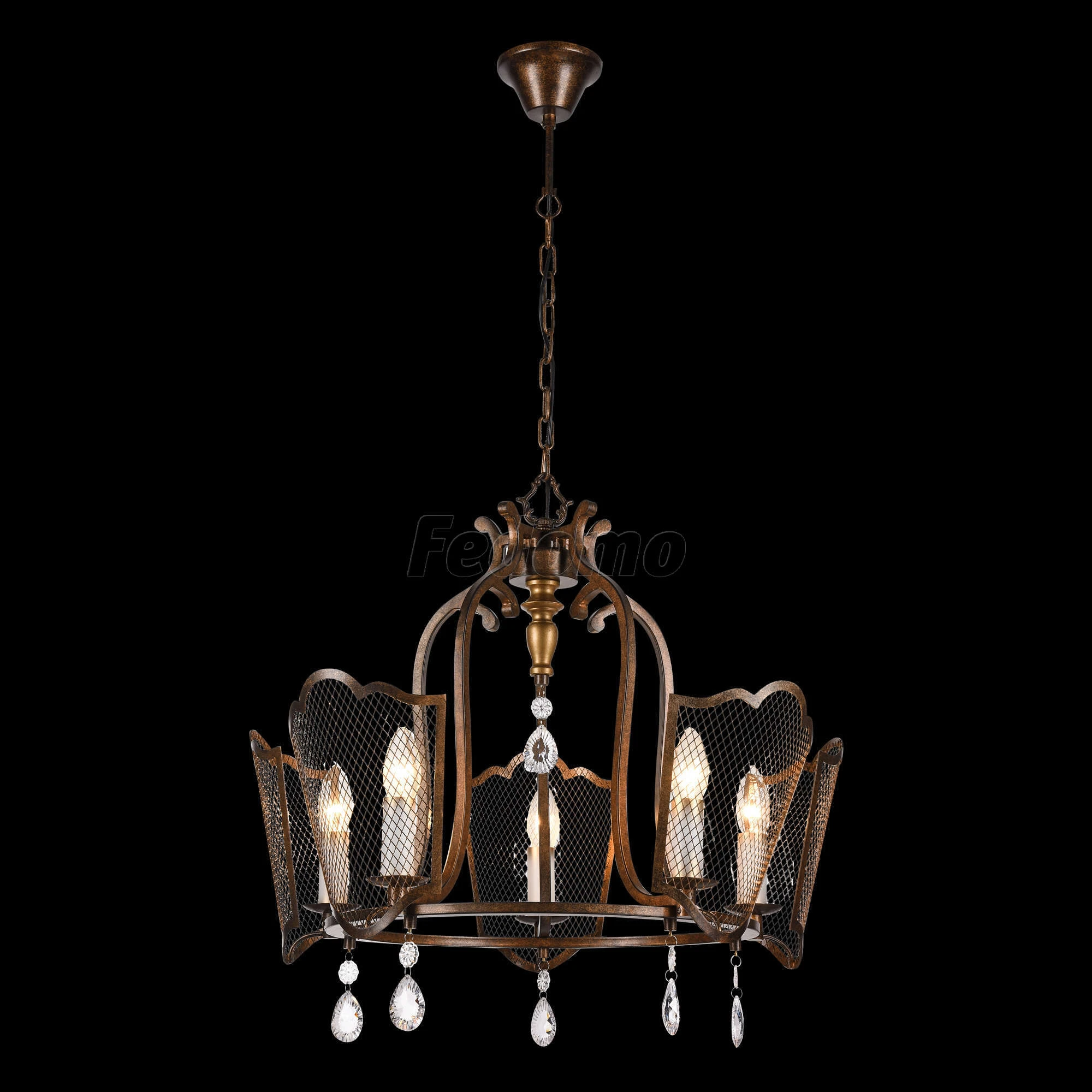Люстра подвесная 2149-5P из серии Venezia от компании Favourite регулируется по высоте и устанавливается на металлический крюк. Классическая люстра в виде подсвечника украшена декоративными элементами из прозрачного хрусталя и прекрасно подойдет в качестве источника основного света для гостиной, кафе, кухни, дачи, оформленных в стиле кантри, замковый. Основной цвет модели - коричневый, материал арматуры - металл. Люстра имеет 1 декоративный плафон со свечением вверх, материал изготовления - матовый металл. Модель оснащена цоколем E14 (5xE14), имеет 5 лампочек с общей мощностью 200W и напряжением 220V. Светильник поддерживает подключение диммера. Габариты: диаметр - 635 мм. Лампочки в комплект не входят. Лучшая цена и условия доставки на Favourite 2149-5P в интернет-магазине Fedomo.ru.