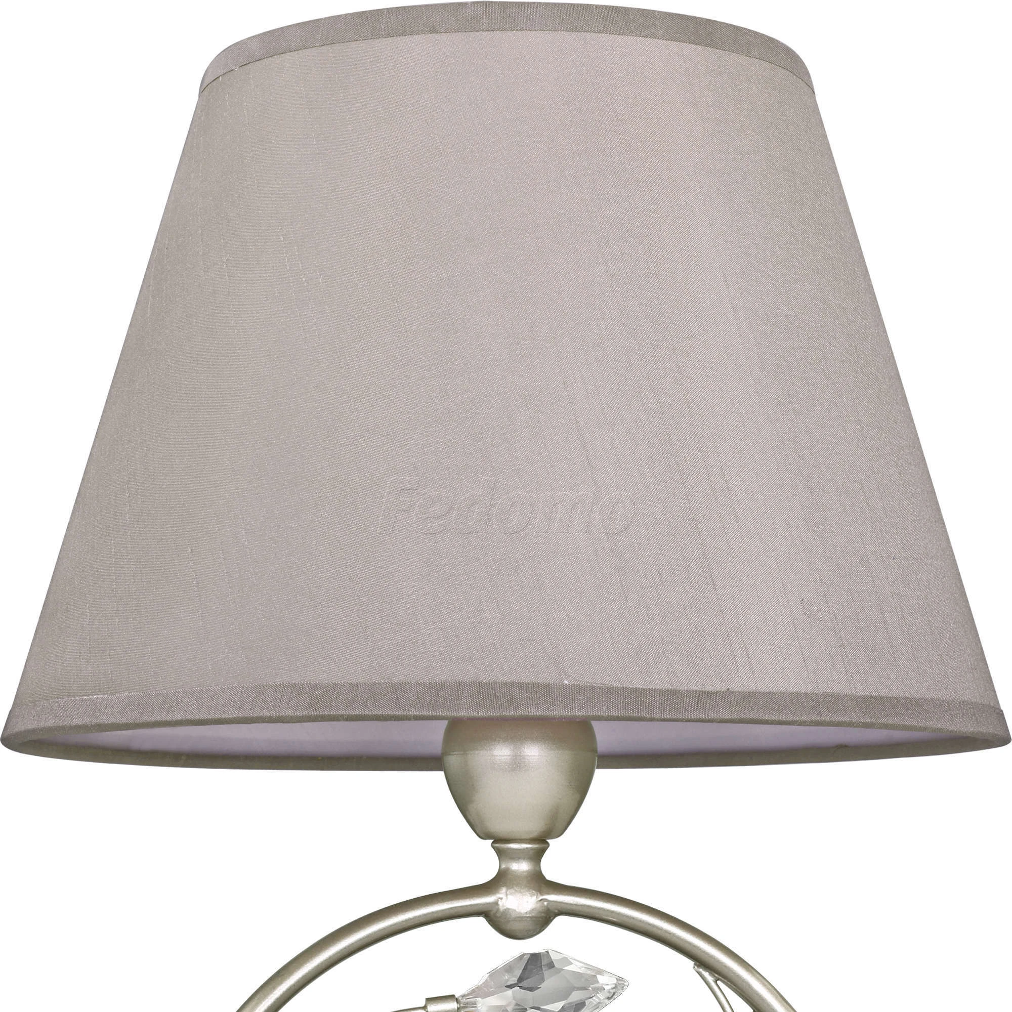 Лампы 1*E14*40W, excluded. Материал и цвет арматуры металл, цвет светлое золото. Плафон ткань светло-серого цвета. Цвет хрусталя прозрачный. Декор прозрачный хрусталь.
