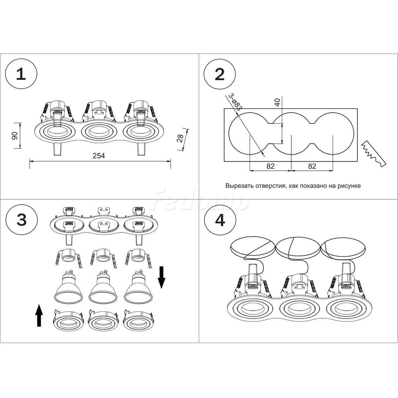 Три светильника, последовательно расположенные в рамке, гарантируют равномерное и мягкое освещение любого жилого или коммерческого пространства. Простая и надёжная установка на распорных пружинах делает монтаж быстрым и безопасным.