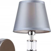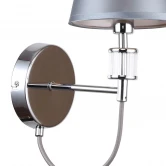 Лампы 1*E14*40W. Каркас цвета хром декорирован тканевыми абажурами из серого атласа. Рожки дополняют стеклянные цилиндры и провода в серой декоративной оплетке. Материал и цвет арматуры металл, хром. Плафон серая ткань. Декор стекло, прозрачный.