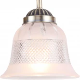 Лампы 1*E14*40W. Каркас в цвете античная бронза дополнен стеклянным декором и полупрозрачными узорными плафонами. Материал и цвет арматуры металл, античная бронза. Плафон полупрозрачное узорное стекло.