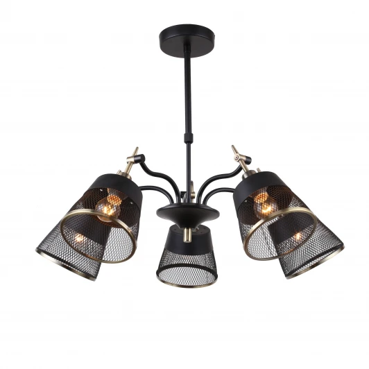 Лампы 5*E14*40W. Коллекция Eget в стиле Лофт выполнена в черном цвете с золочением отдельных элементов. Плафоны из металлической сетки оснащены поворотным механизмом. Телескопическая трубка позволяет регулировать высоту светильника адаптируя к высоте помещения. Материал и цвет арматуры металл, черный и латунь. Плафон черный и латунь, металл.