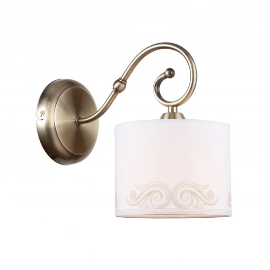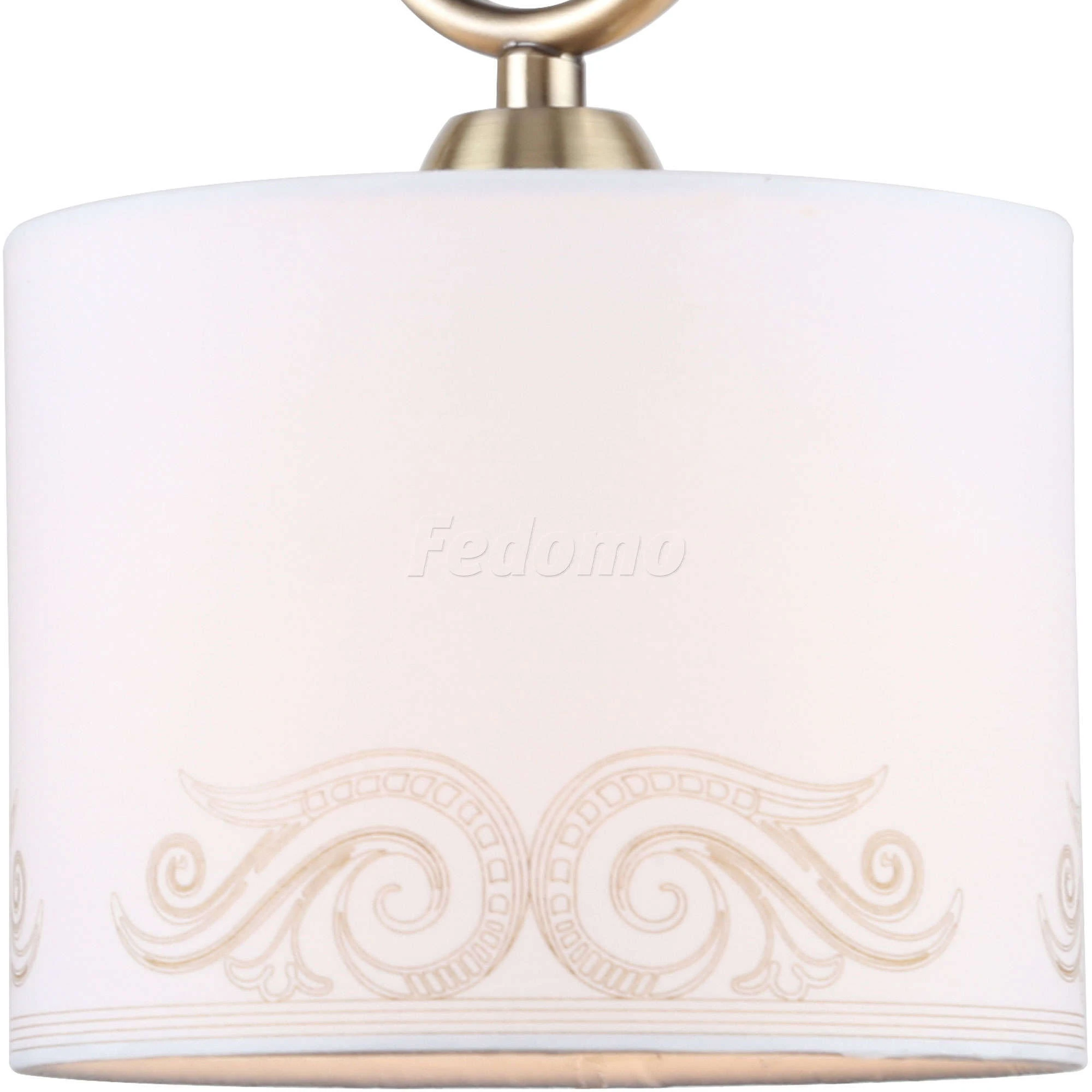 Лампы 1*E14*40W. Каркас в цвете античная бронза оформлен декоративными элементами из бронзы и тканевыми плафонами с классическим узором. Материал и цвет арматуры металл, античная бронза. Плафон белая ткань с золотым узором.