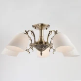 Люстра потолочная 22010/5 античная бронза из серии 22010 от компании Eurosvet устанавливается на монтажную пластину. Люстра прекрасно подойдет в качестве источника основного света для гостиной, спальни, кухни, кабинета, оформленных в стиле модерн. Основной цвет модели - белый, материал арматуры - металл. Люстра имеет 5 плафонов со свечением вниз, материал изготовления - стекло. Модель оснащена цоколем E27, имеет 5 лампочек с общей мощностью 300W и напряжением 220V. Светильник поддерживает подключение диммера. Габариты: диаметр - 640 мм. Лучшая цена и условия доставки на Eurosvet 22010/5 античная бронза в интернет-магазине Fedomo.ru.