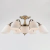 Люстра потолочная 22010/6+2 античная бронза из серии 22010 от компании Eurosvet устанавливается на монтажную пластину. Люстра прекрасно подойдет в качестве источника основного света для гостиной, спальни, кабинета, оформленных в стиле модерн. Основной цвет модели - белый, материал арматуры - металл. Люстра имеет 7 плафонов со свечением вниз, материал изготовления - стекло. Модель оснащена цоколем E27, имеет 8 лампочек с общей мощностью 480W и напряжением 220V. Светильник поддерживает подключение диммера. Габариты: диаметр - 750 мм. Лучшая цена и условия доставки на Eurosvet 22010/6+2 античная бронза в интернет-магазине Fedomo.ru.