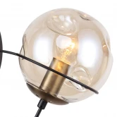Лампы 1*E14*40W. Каркас черного цвета оформлен выдувными плафонами янтарного цвета с эффектом деформированных пузырей. Материал и цвет арматуры металл, черный и латунь. Плафон выдувное стекло цвета шампань.