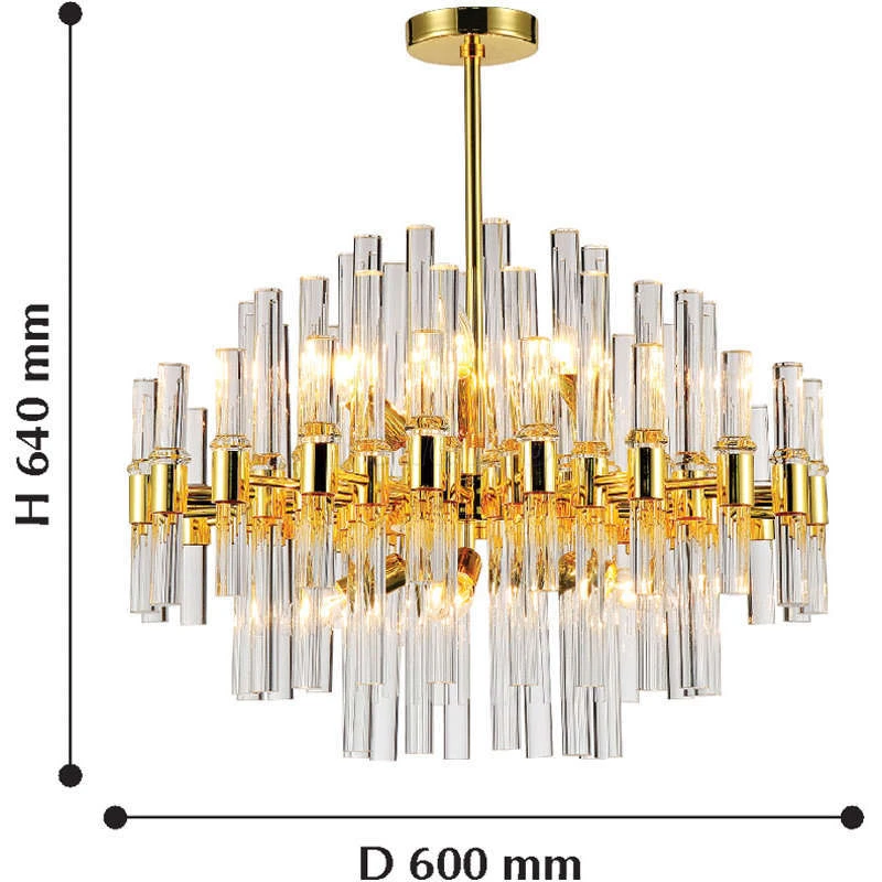 Люстра потолочная 2205-10P из серии Сelebratio от компании Favourite устанавливается на монтажную пластину. Люстра украшена прозрачными стеклянными трубочками и прекрасно подойдет в качестве источника основного света для гостиной, кухни, оформленных в стиле модерн, кантри, ар нуво. Основной цвет модели - золото, материал арматуры - металл. Люстра имеет 1 декоративный плафон со свечением вверх и вниз, материал изготовления - глянцевое стекло. Модель оснащена цоколем E14 (10xE14), имеет 10 лампочек с общей мощностью 400W и напряжением 220V. Светильник поддерживает подключение диммера. Габариты: высота - 640 мм, диаметр - 600 мм. Лампочки в комплект не входят. Лучшая цена и условия доставки на Favourite 2205-10P в интернет-магазине Fedomo.ru.