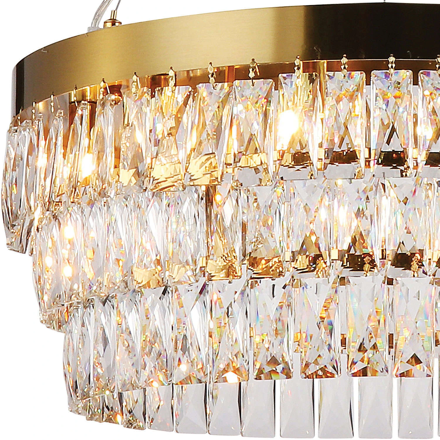 Люстра подвесная хрустальная 2206-12P из серии Magnitudo от компании Favourite регулируется по высоте и устанавливается на монтажную пластину. Классическая люстра украшена декоративными элементами из прозрачного хрусталя и прекрасно подойдет в качестве источника основного света для гостиной, кухни, над кухонным островом, оформленных в стиле арт-деко. Основной цвет модели - золото, материал арматуры - металл. Люстра имеет 1 декоративный плафон со свечением вниз, материал изготовления - глянцевый хрусталь, металл. Модель оснащена цоколем G9 (12xG9), имеет 12 лампочек с общей мощностью 480W и напряжением 220V. Светильник поддерживает подключение диммера. Габариты: диаметр - 600 мм. Лампочки в комплект не входят. Лучшая цена и условия доставки на Favourite 2206-12P в интернет-магазине Fedomo.ru.