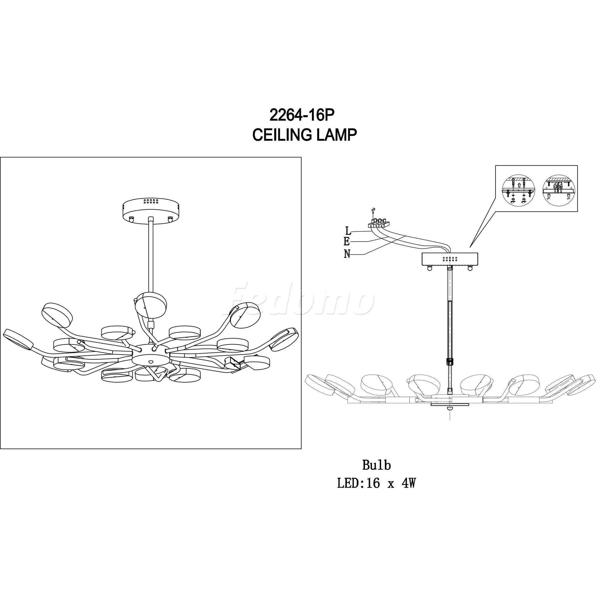 Люстра потолочная 2264-16P из серии Mense от компании Favourite регулируется по высоте и устанавливается на монтажную пластину. Современная люстра прекрасно подойдет в качестве источника основного света для гостиной, спальни, кухни, кабинета, офиса, оформленных в стиле модерн, хай-тек. Основной цвет модели - белый, материал арматуры - металл. Люстра имеет 16 плафонов, материал изготовления - матовый акрил. Светодиодная модель с цоколем LED (16xLED), имеет 16 лампочек с общей мощностью 64W и напряжением 220V. Светильник имеет цветовую температуру 4000К. Габариты: диаметр - 950 мм. В комплекте есть лампочки. Срок службы модели составит не менее 25000 часов. Лучшая цена и условия доставки на Favourite 2264-16P в интернет-магазине Fedomo.ru.