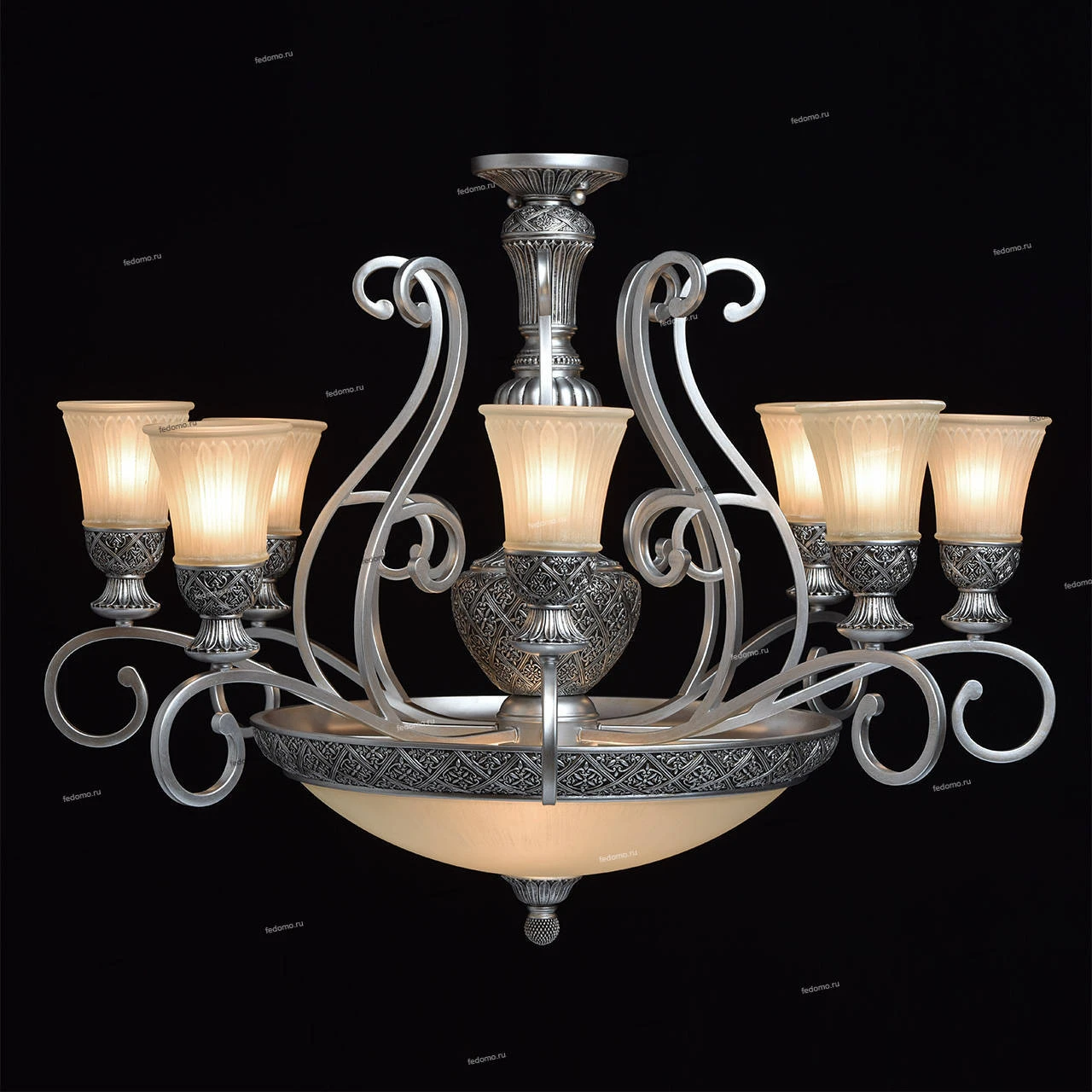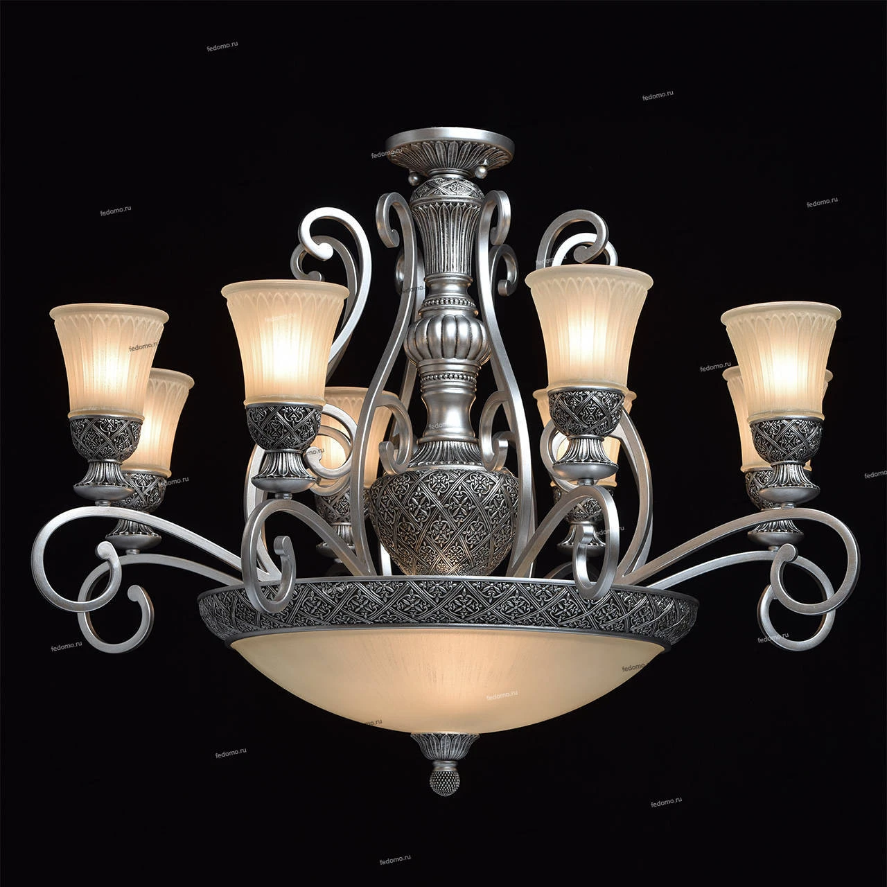 Люстра потолочная большая кованая 254011512 из серии Версаче от компании Chiaro регулируется по высоте и устанавливается на металлический крюк. Классическая люстра прекрасно подойдет в качестве источника основного света для гостиной, спальни, кабинета. Основной цвет модели - белый, материал арматуры - металл, полирезина. Люстра имеет 9 плафонов со свечением вверх, материал изготовления - стекло. Модель оснащена цоколем E27 (11хE27), имеет 11 лампочек с общей мощностью 660W и напряжением 220V. Светильник поддерживает подключение диммера. Габариты: высота - 2400 мм, диаметр - 1000 мм, длина подвеса - 1600 мм. Лампочки в комплект не входят. Лучшая цена и условия доставки на Chiaro 254011512 в интернет-магазине Fedomo.ru.