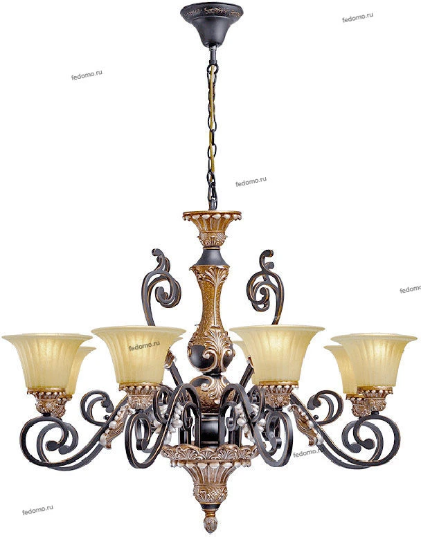 Люстра подвесная кованая 254012308 из серии Версаче от компании Chiaro регулируется по высоте и устанавливается на металлический крюк. Классическая люстра прекрасно подойдет в качестве источника основного света для гостиной, спальни, кабинета. Основной цвет модели - коричневый, материал арматуры - металл. Люстра имеет 8 плафонов со свечением вверх, материал изготовления - стекло. Модель оснащена цоколем E27 (8хE27), имеет 8 лампочек с общей мощностью 480W и напряжением 220V. Светильник поддерживает подключение диммера. Габариты: высота - 2300 мм, диаметр - 940 мм, длина подвеса - 1550 мм. Лампочки в комплект не входят. Лучшая цена и условия доставки на Chiaro 254012308 в интернет-магазине Fedomo.ru.