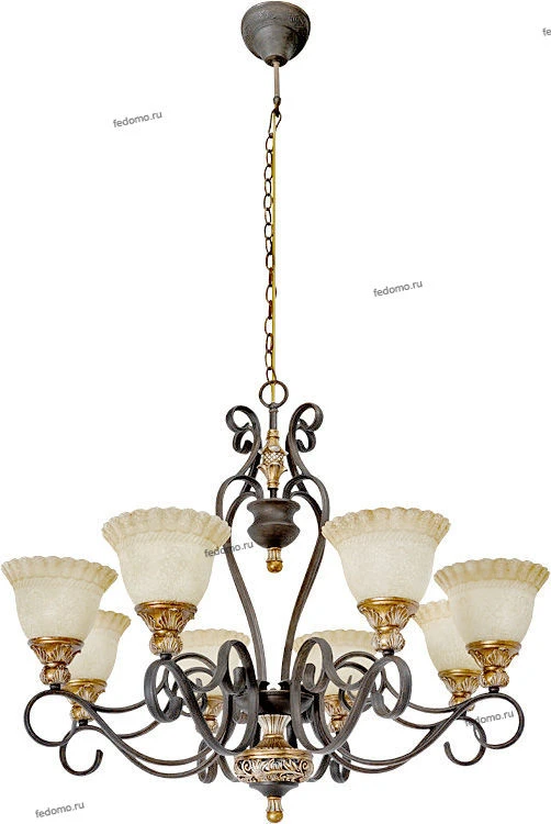 Люстра подвесная кованая 254012808 из серии Версаче от компании Chiaro регулируется по высоте и устанавливается на металлический крюк. Классическая люстра прекрасно подойдет в качестве источника основного света для гостиной, спальни, кабинета. Основной цвет модели - коричневый, материал арматуры - металл. Люстра имеет 8 плафонов со свечением вверх, материал изготовления - стекло. Модель оснащена цоколем E27 (8хE27), имеет 8 лампочек с общей мощностью 480W и напряжением 220V. Светильник поддерживает подключение диммера. Габариты: ширина - 910 мм, высота - 760 мм, длина подвеса - 1200 мм. Лампочки в комплект не входят. Лучшая цена и условия доставки на Chiaro 254012808 в интернет-магазине Fedomo.ru.