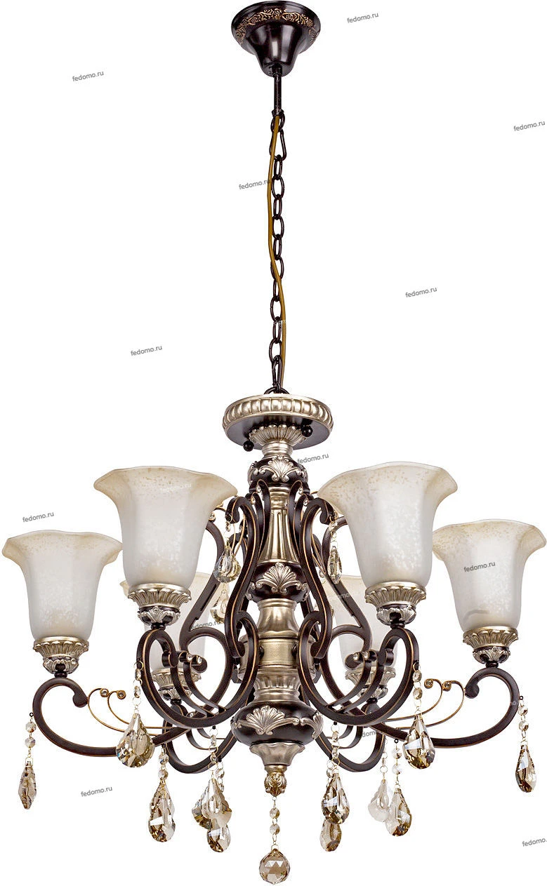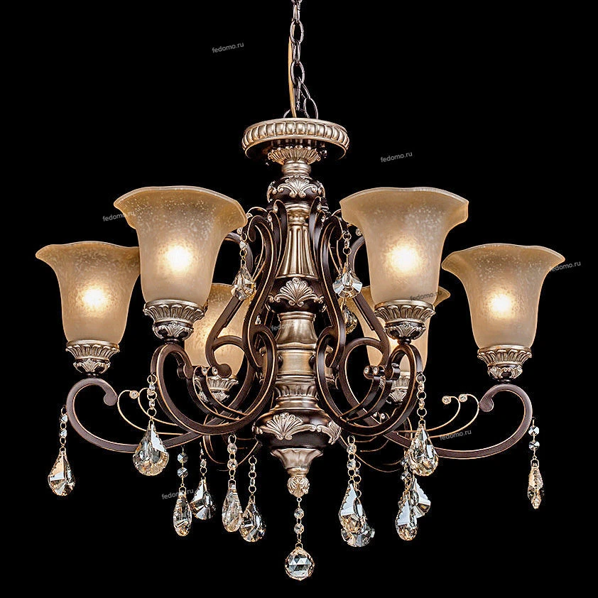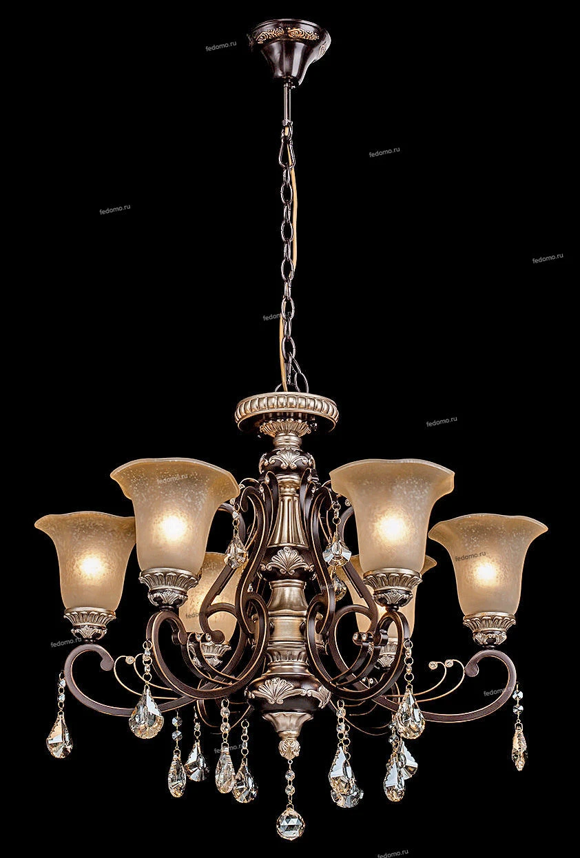 Люстра подвесная 254018906 из серии Версаче от компании Chiaro регулируется по высоте и устанавливается на металлический крюк. Классическая люстра прекрасно подойдет в качестве источника основного света для гостиной, спальни, кабинета. Основной цвет модели - бронза, материал арматуры - металл. Люстра имеет 6 плафонов со свечением вверх, материал изготовления - стекло. Модель оснащена цоколем E27 (6хE27), имеет 6 лампочек с общей мощностью 360W и напряжением 220V. Светильник поддерживает подключение диммера. Габариты: высота - 2400 мм, диаметр - 730 мм, длина подвеса - 1500 мм. Лампочки в комплект не входят. Лучшая цена и условия доставки на Chiaro 254018906 в интернет-магазине Fedomo.ru.