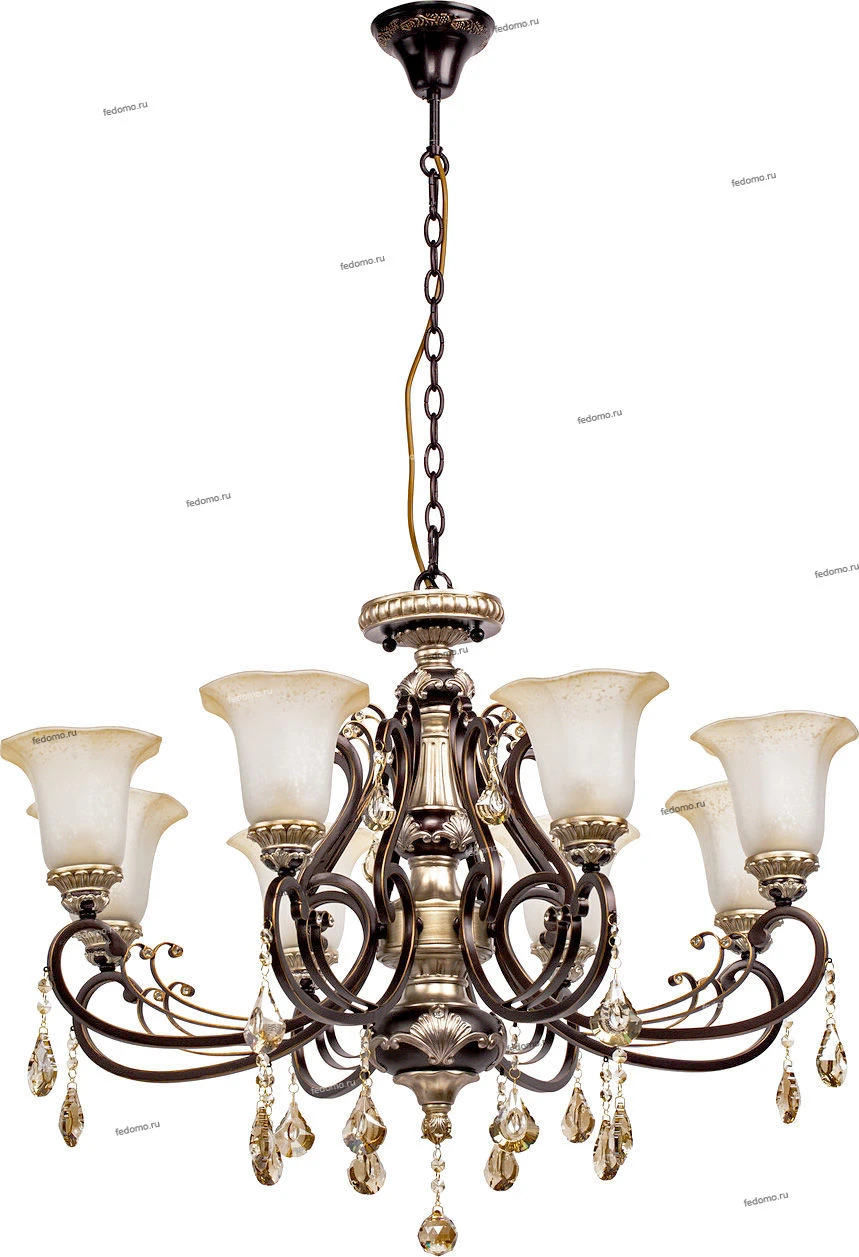 Люстра подвесная 254019008 из серии Версаче от компании Chiaro регулируется по высоте и устанавливается на металлический крюк. Классическая люстра прекрасно подойдет в качестве источника основного света для гостиной, спальни, кабинета. Основной цвет модели - бронза, материал арматуры - металл. Люстра имеет 8 плафонов со свечением вверх, материал изготовления - стекло. Модель оснащена цоколем E27 (8хE27), имеет 8 лампочек с общей мощностью 480W и напряжением 220V. Светильник поддерживает подключение диммера. Габариты: высота - 2400 мм, диаметр - 950 мм, длина подвеса - 1500 мм. Лампочки в комплект не входят. Лучшая цена и условия доставки на Chiaro 254019008 в интернет-магазине Fedomo.ru.