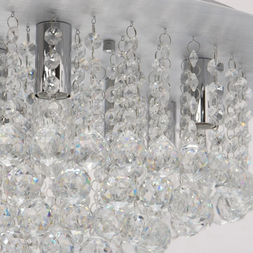 Воздушный 5-ти ярусный хрустальный светильник с прозрачными подвесками.