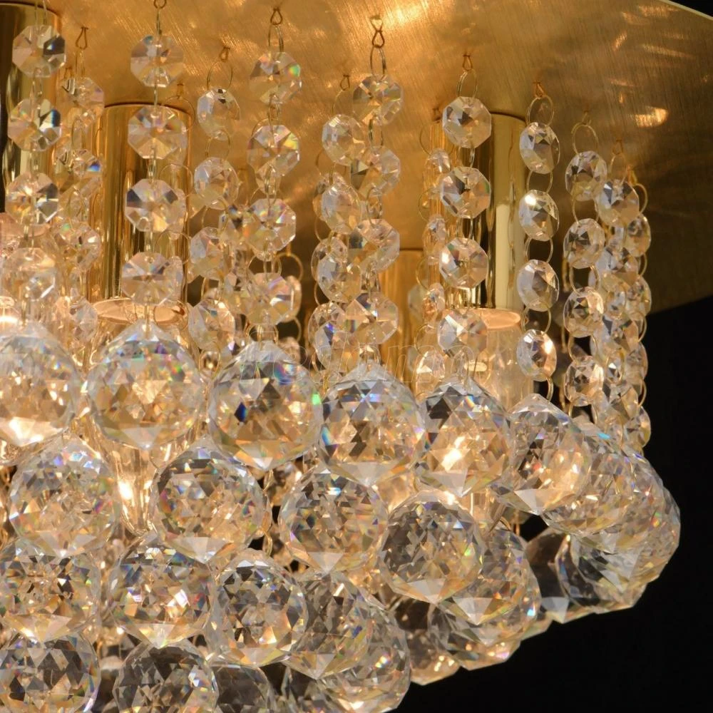 Воздушный 5-ти ярусный хрустальный светильник с прозрачными подвесками.