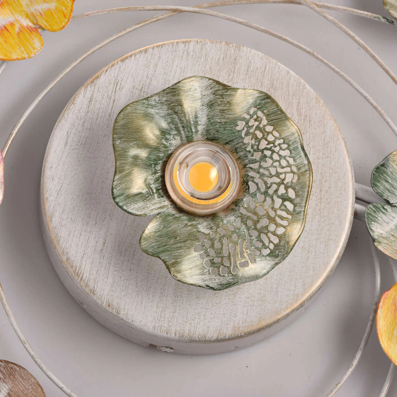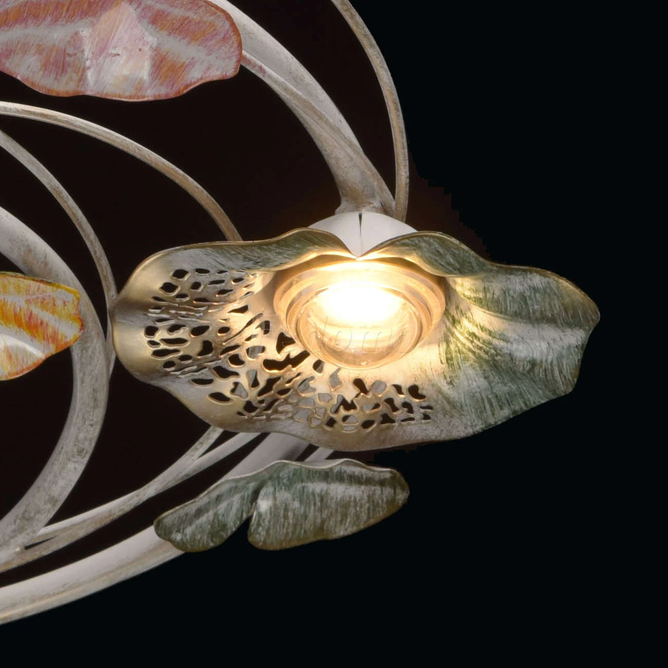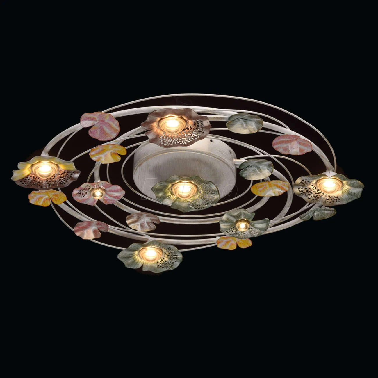 Оригинальная потолочная люстра из коллекции «Адриатика» станет ярким акцентом в любом интерьере. Белое металлическое основание с эффектом патинирования дополнено необычными цветами-плафонами. Выполненные из металла, они окрашены вручную и являются главной