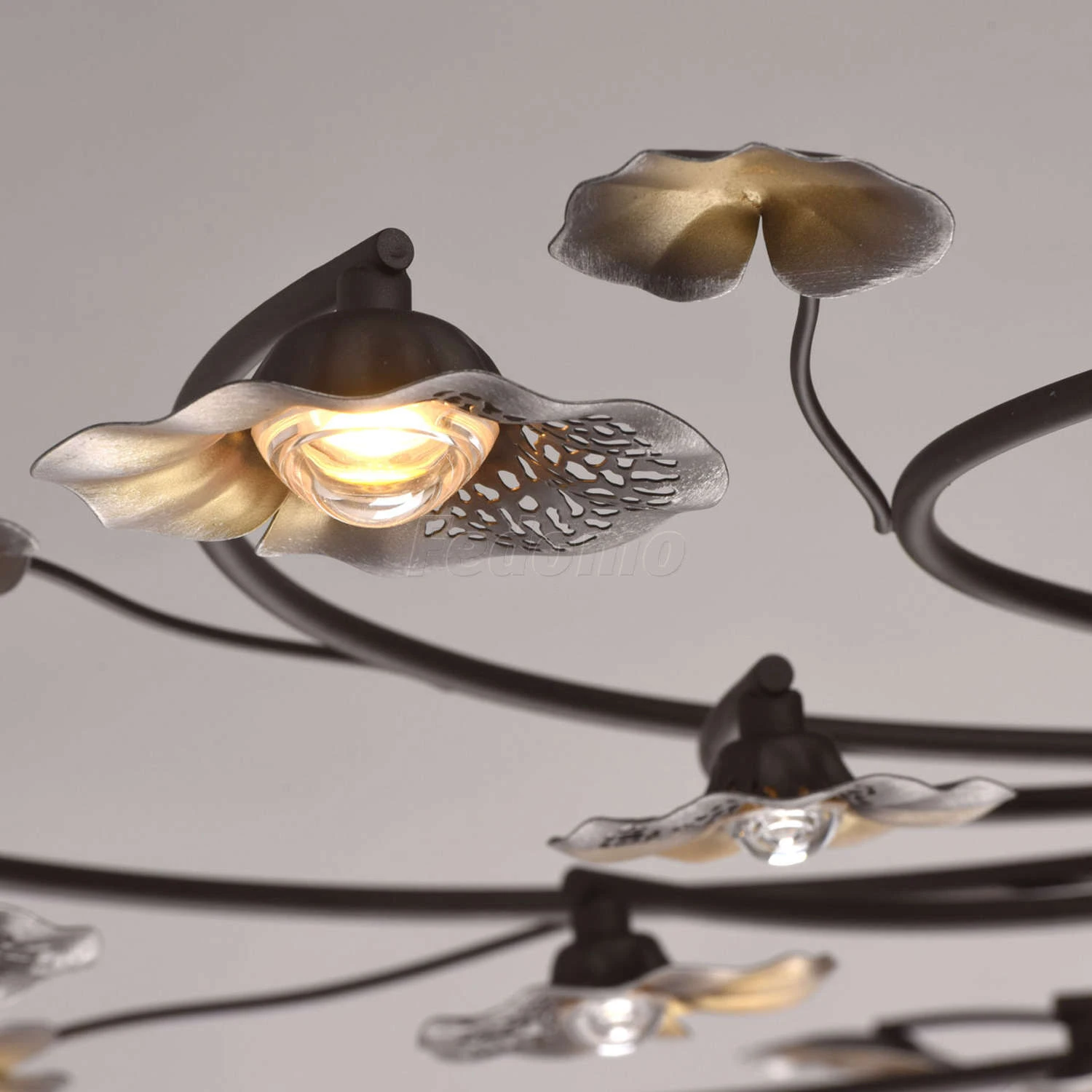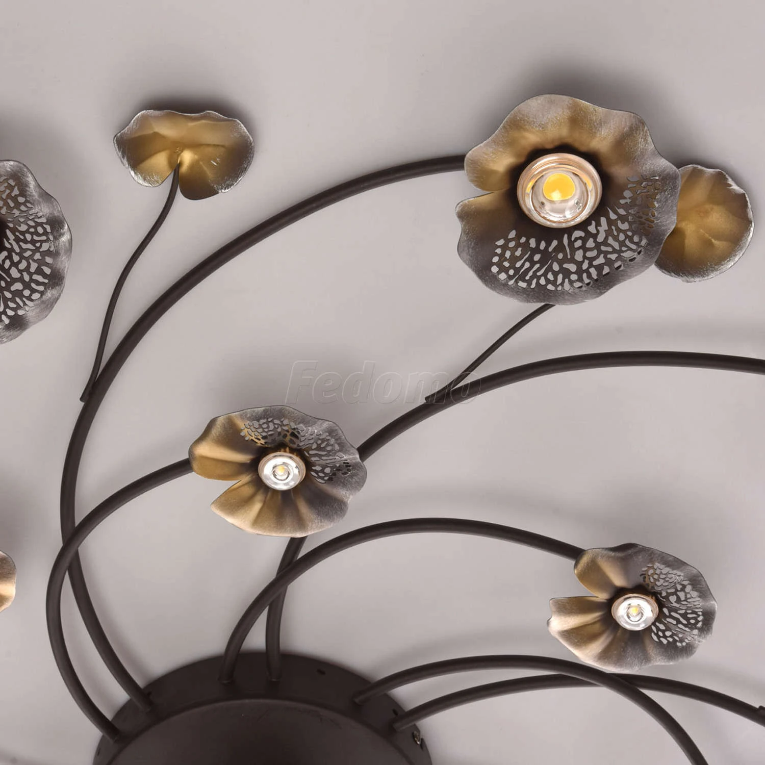 Нежная люстра из коллекции «Адриатика» создана для тех, кто мечтает наполнить обстановку романтичной атмосферой. Металлическое основание глубокого кофейного оттенка подчеркнуто золотым патинированием. Главная изюминка модели – оригинальные миниатюрные пла