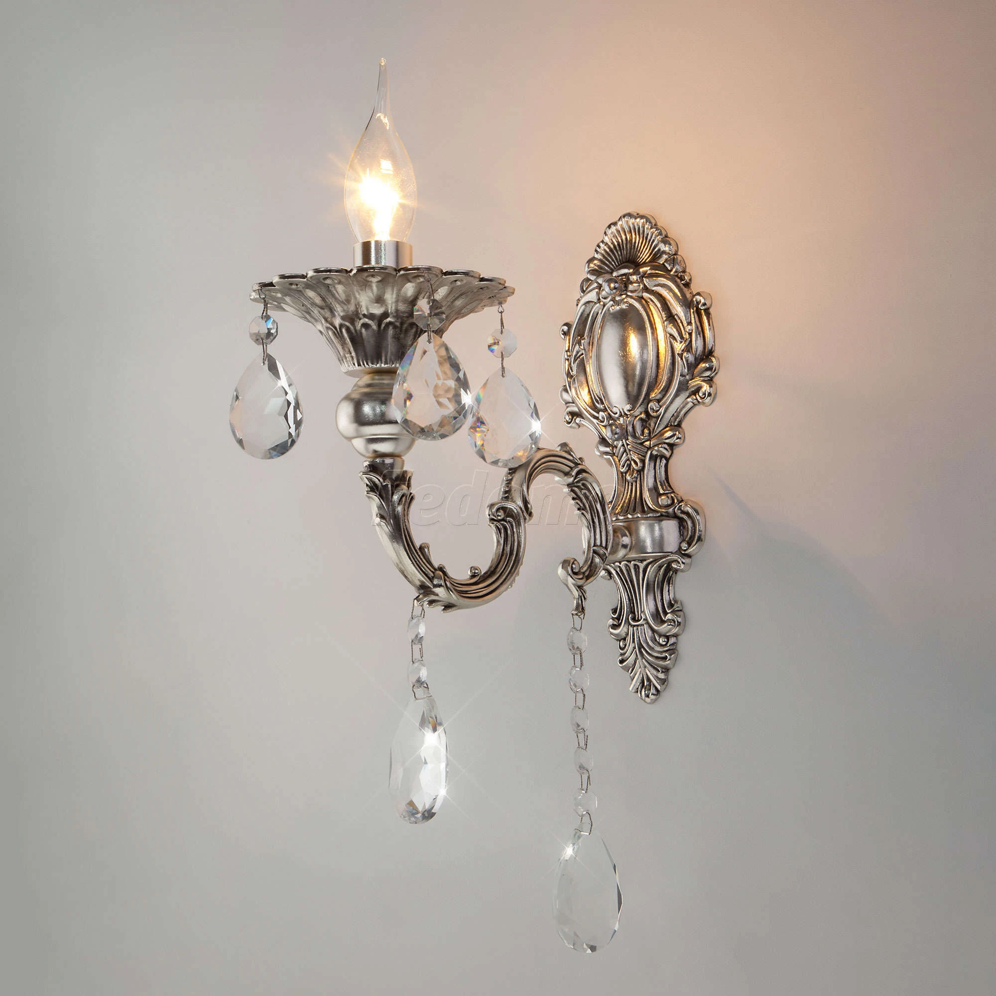 Бра 282/1 Strotskis из серии Clarence от компании Bogate's украшено хрусталем и отлично подойдет в качестве дополнительного источника света для гостиной, прихожей и коридора, кафе, спальни, кабинета, выполненных в стиле классический, барокко. Основной цвет модели - серебро, материал арматуры - металл. Бра в виде подсвечника имеет 1 лампочку, оснащено цоколем E14 с общей мощностью 60W и напряжением 230V. Светильник поддерживает подключение диммера. Бра устанавливается на монтажную пластину. Лампочки в комплект не входят. Лучшая цена и условия доставки на Bogate's 282/1 Strotskis в интернет-магазине Fedomo.ru.