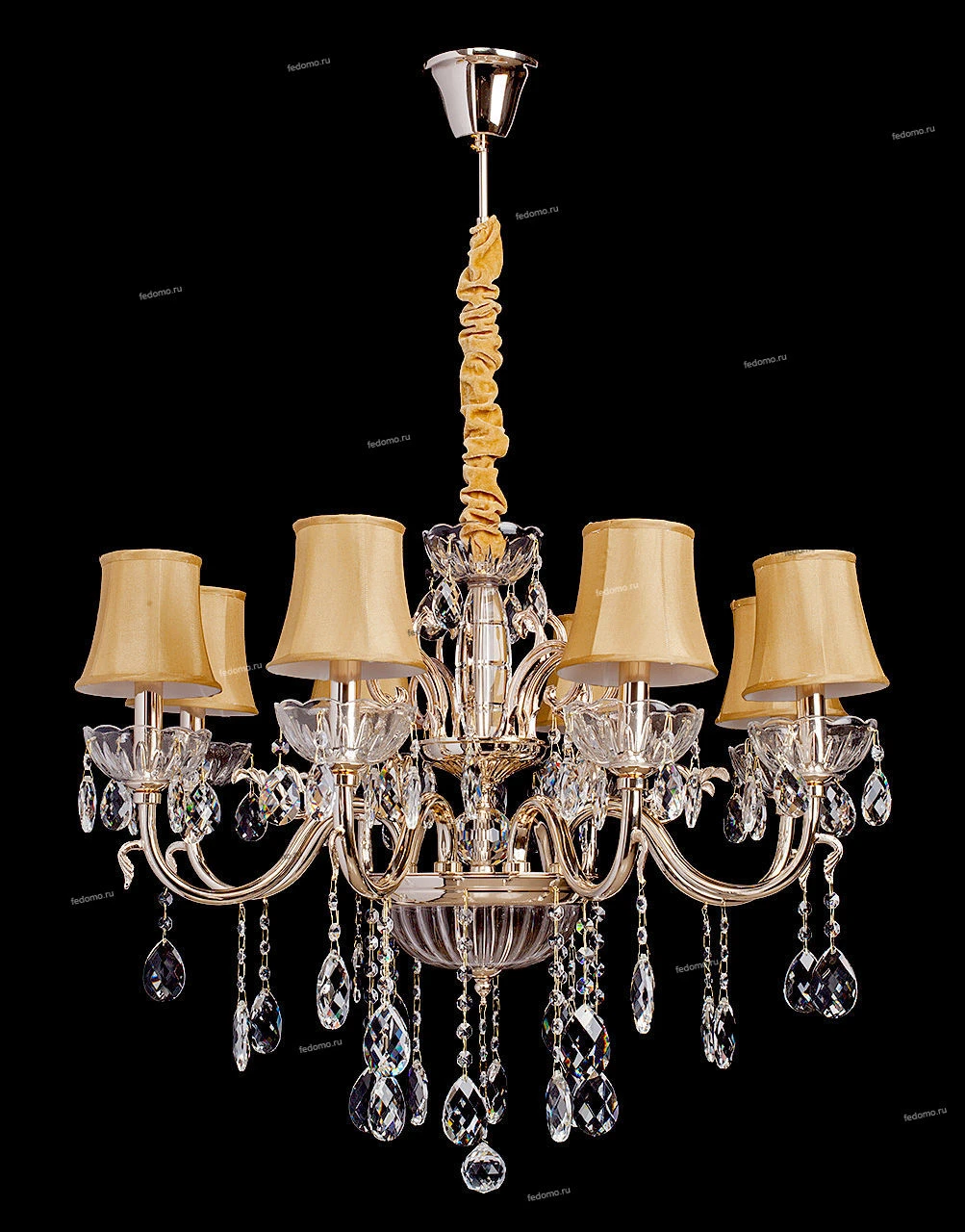 Люстра подвесная хрустальная 282010908 из серии Сицилия от компании Chiaro устанавливается на металлический крюк. Классическая люстра украшена хрусталем и прекрасно подойдет в качестве источника основного света для гостиной, холла, оформленных в стиле ар нуво. Основной цвет модели - желтый, материал арматуры - металл. Люстра имеет 8 абажуров со свечением вверх, материал изготовления - ткань. Модель оснащена цоколем E14 (8хE14), имеет 8 лампочек с общей мощностью 320W и напряжением 220V. Светильник поддерживает подключение диммера. Габариты: высота - 1050 мм, диаметр - 780 мм. Лампочки в комплект не входят. Лучшая цена и условия доставки на Chiaro 282010908 в интернет-магазине Fedomo.ru.