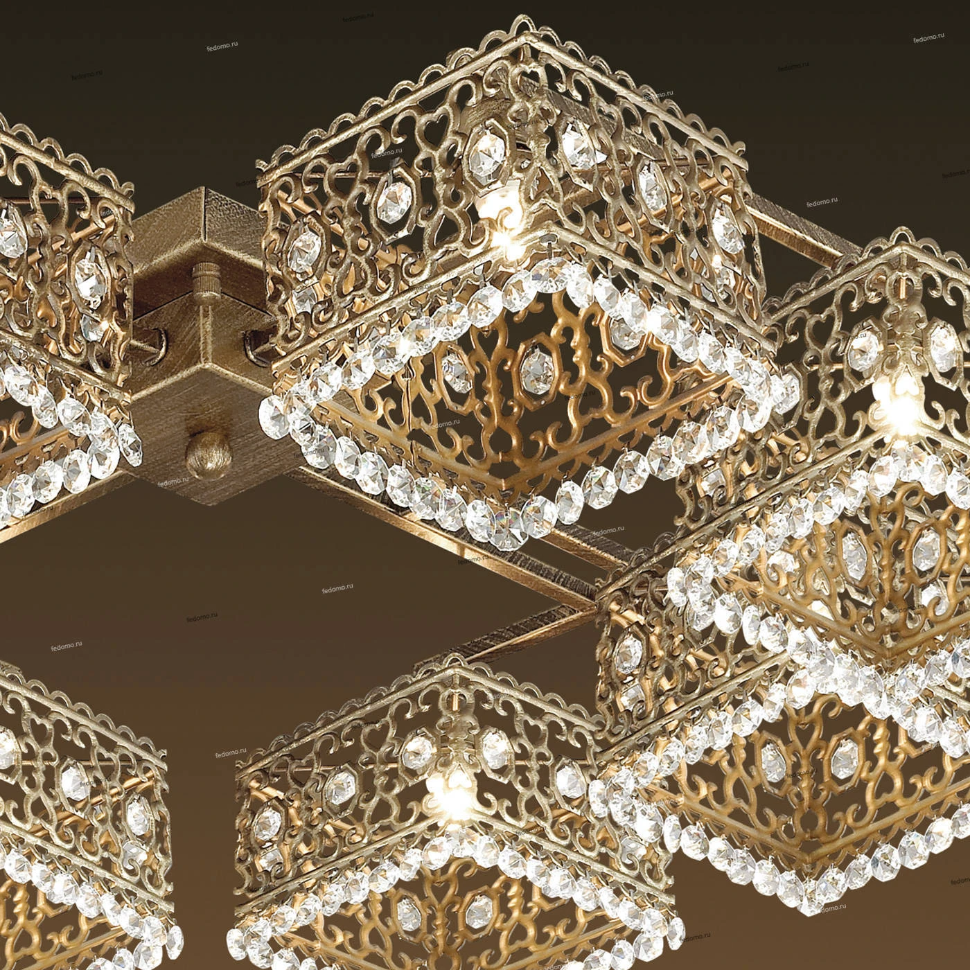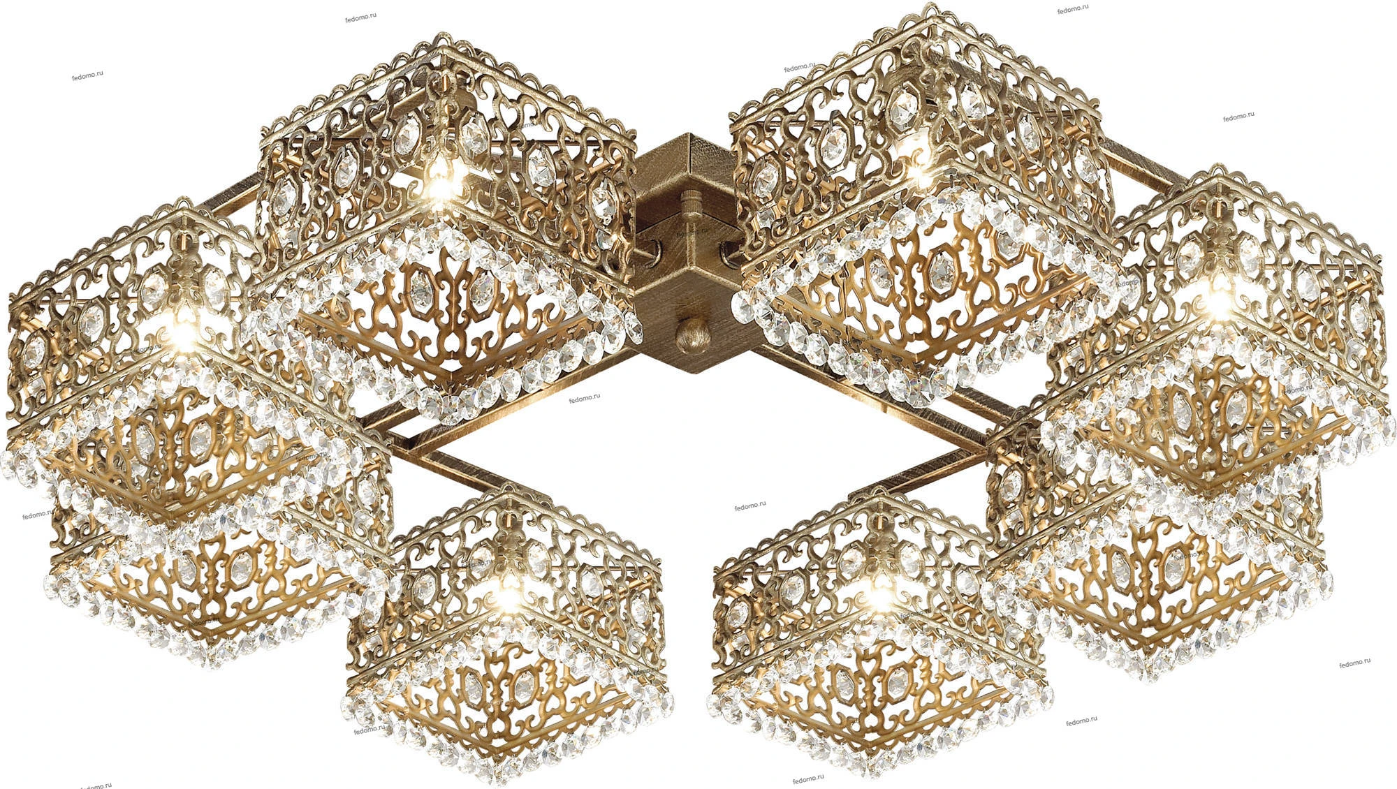 Люстра потолочная большая хрустальная 2835/8C из серии Sesam от компании Odeon Light устанавливается на монтажную пластину. Люстра в форме куба украшена хрустальными подвесками и прекрасно подойдет в качестве источника основного света для гостиной, спальни, оформленных в стиле восточный, этнический. Основной цвет модели - бронза, материал арматуры - металл. Люстра имеет 8 плафонов со свечением вниз, материал изготовления - матовый металл. Модель оснащена цоколем G9 (8хG9), имеет 8 лампочек с общей мощностью 320W и напряжением 220V. Светильник поддерживает подключение диммера. Габариты: длина - 610 мм, ширина - 610 мм, высота - 180 мм. Лампочки в комплект не входят. Лучшая цена и условия доставки на Odeon Light 2835/8C в интернет-магазине Fedomo.ru.