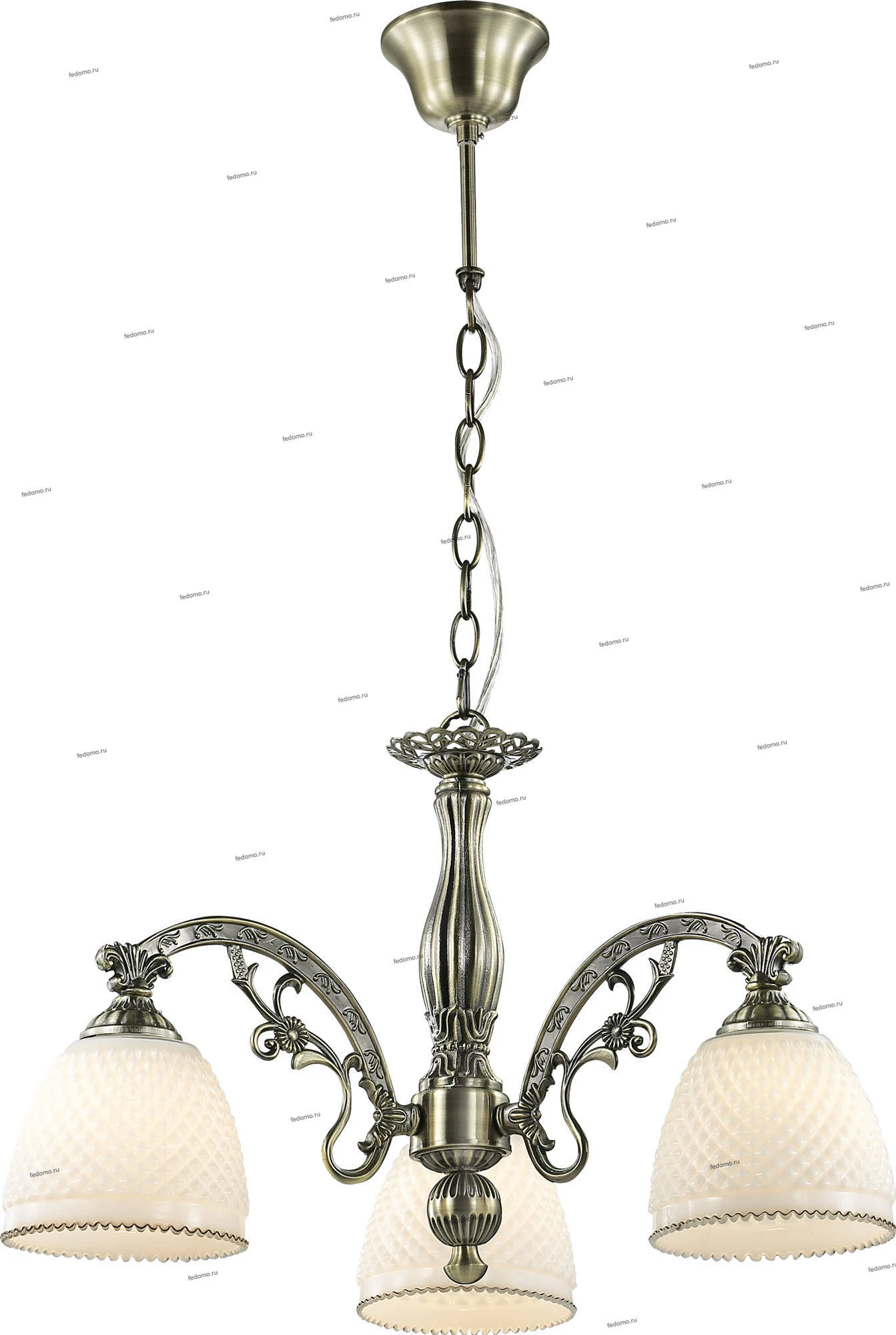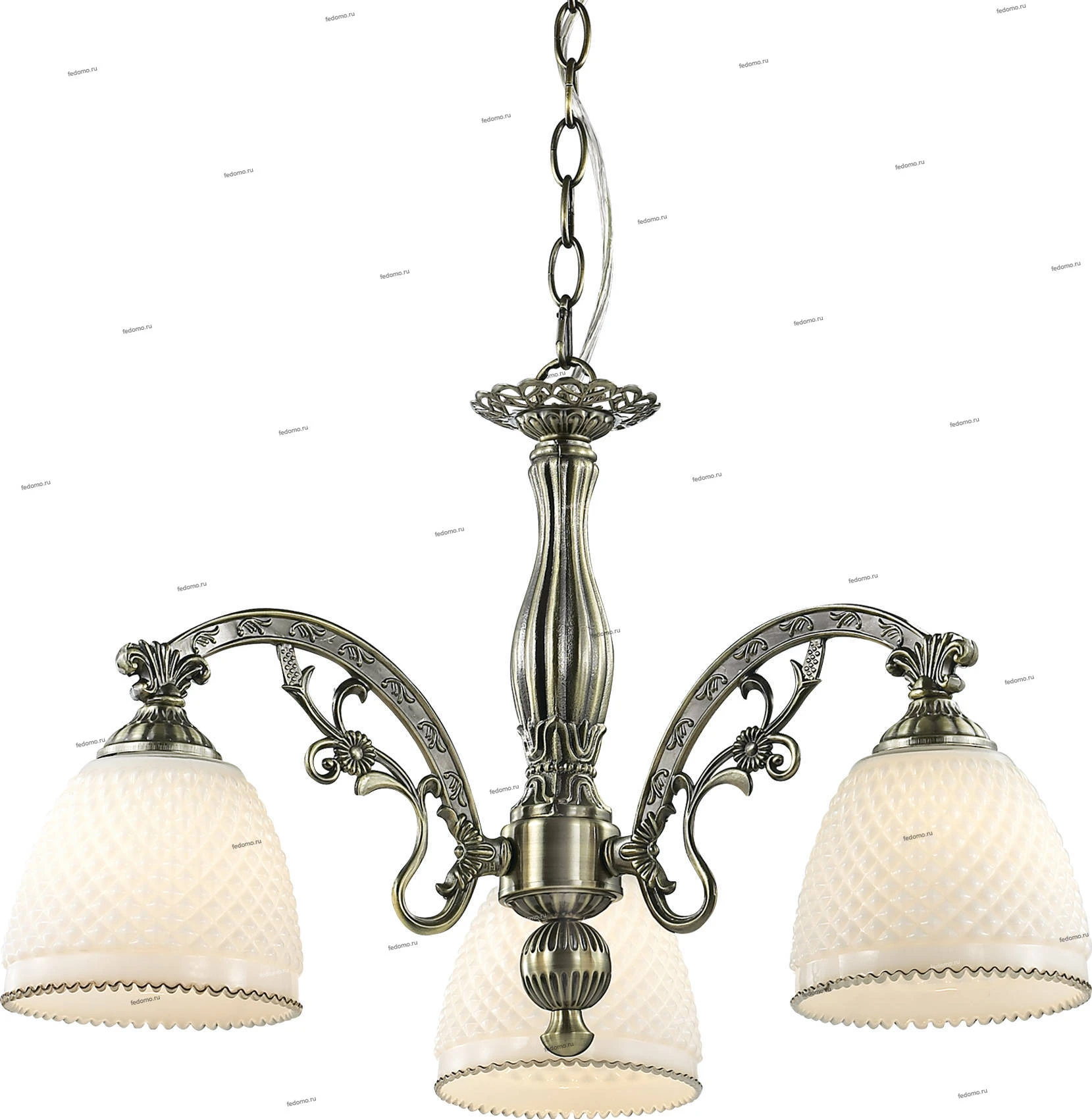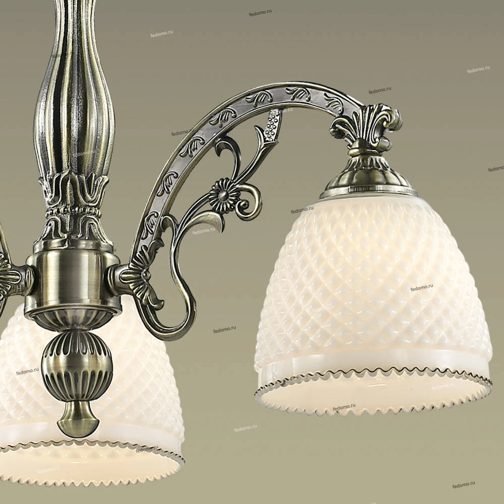 Материалы исполнения плафон: стекло рифленое, арматура: металл, декор: металлический декор. Цвет арматуры бронзовый. Плафон в цвете: белый. Декор декоративная арматура, материал декора металл, цвет бронзовый. Люстра 2868/3 серии Masala выполнена в классическом стиле. Люстра состоит из белого стекла и арматуры цвета бронза изящно закрученной в канделябр. Сдержанный дизайн и простота линий гармонично сочитаются в интерьере. Цоколь Е27. Мощность 3х40W. Тип крепления "крюк" Нет ламп в комплекте. Наименование 2868/3 ODL16 519 бронзовый/стекло Люстра Е27 3*40W 220V MASALA.