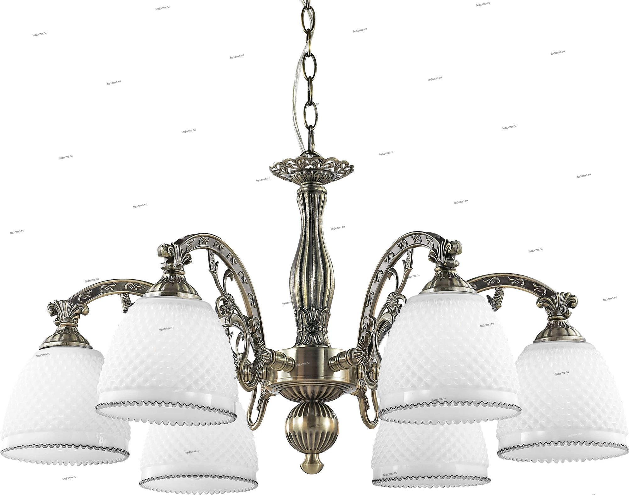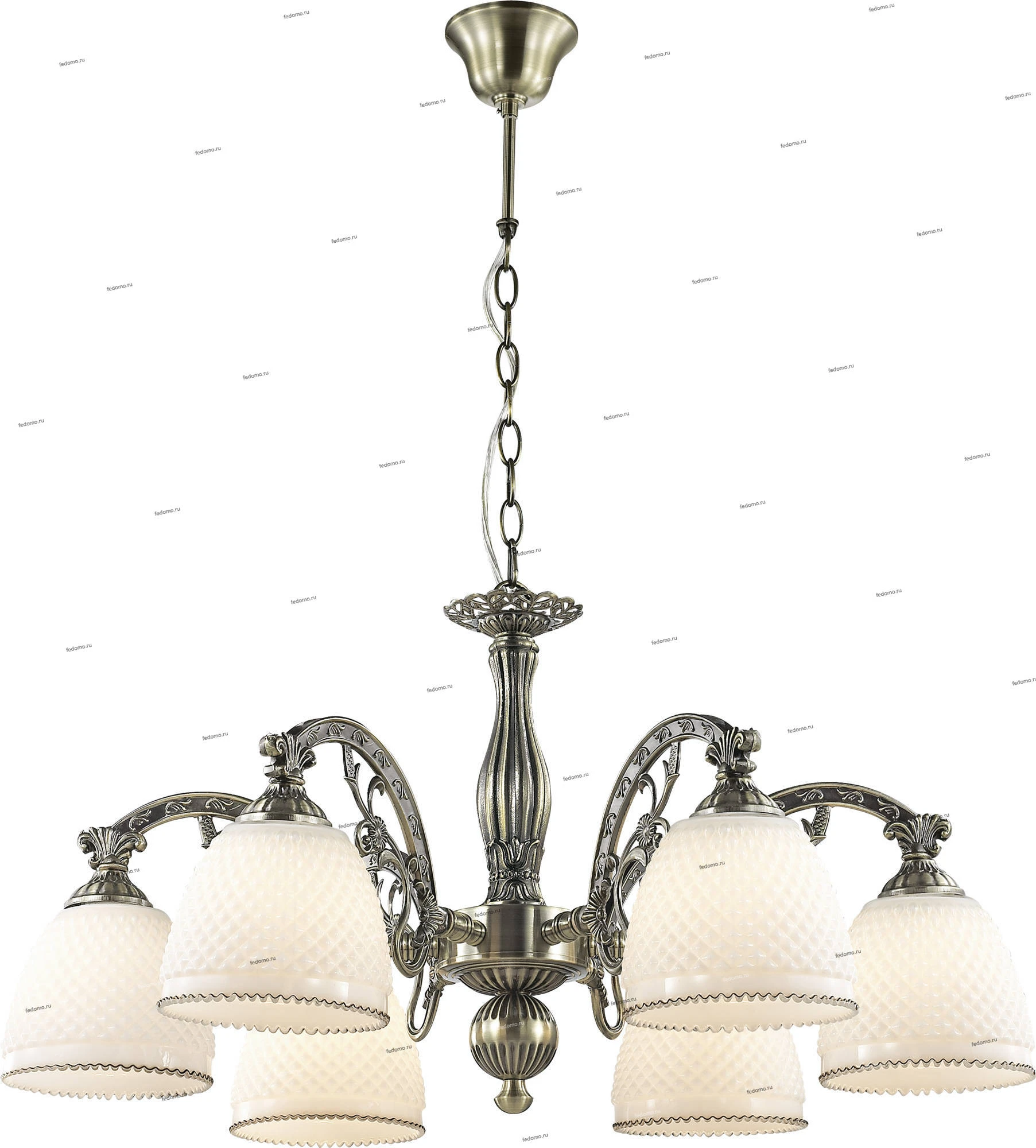 Материалы исполнения плафон: стекло рифленое, арматура: металл, декор: металлический декор. Цвет арматуры бронзовый. Плафон в цвете: белый. Декор декоративная арматура, материал декора металл, цвет бронзовый. Люстра 2868/6 серии Masala выполнена в классическом стиле. Люстра состоит из белого стекла и арматуры цвета бронза изящно закрученной в канделябр. Сдержанный дизайн и простота линий гармонично сочитаются в интерьере. Цоколь Е27. Мощность 6х40W. Тип крепления "крюк" Нет ламп в комплекте. Наименование 2868/6 ODL16 519 бронзовый/стекло Люстра Е27 6*40W 220V MASALA.