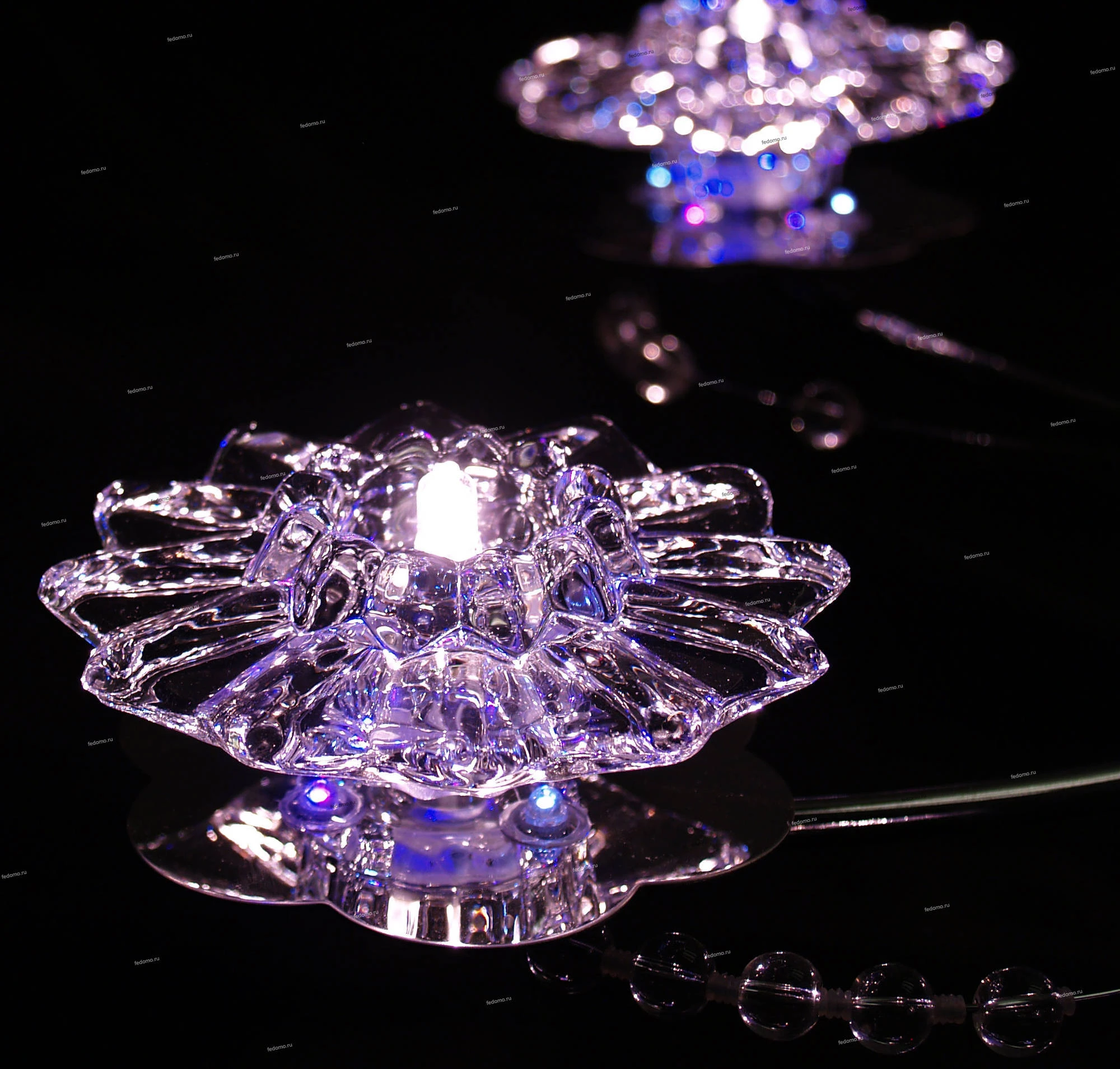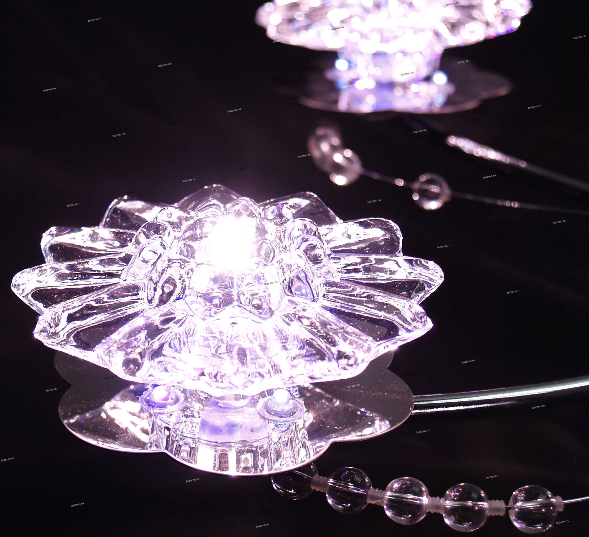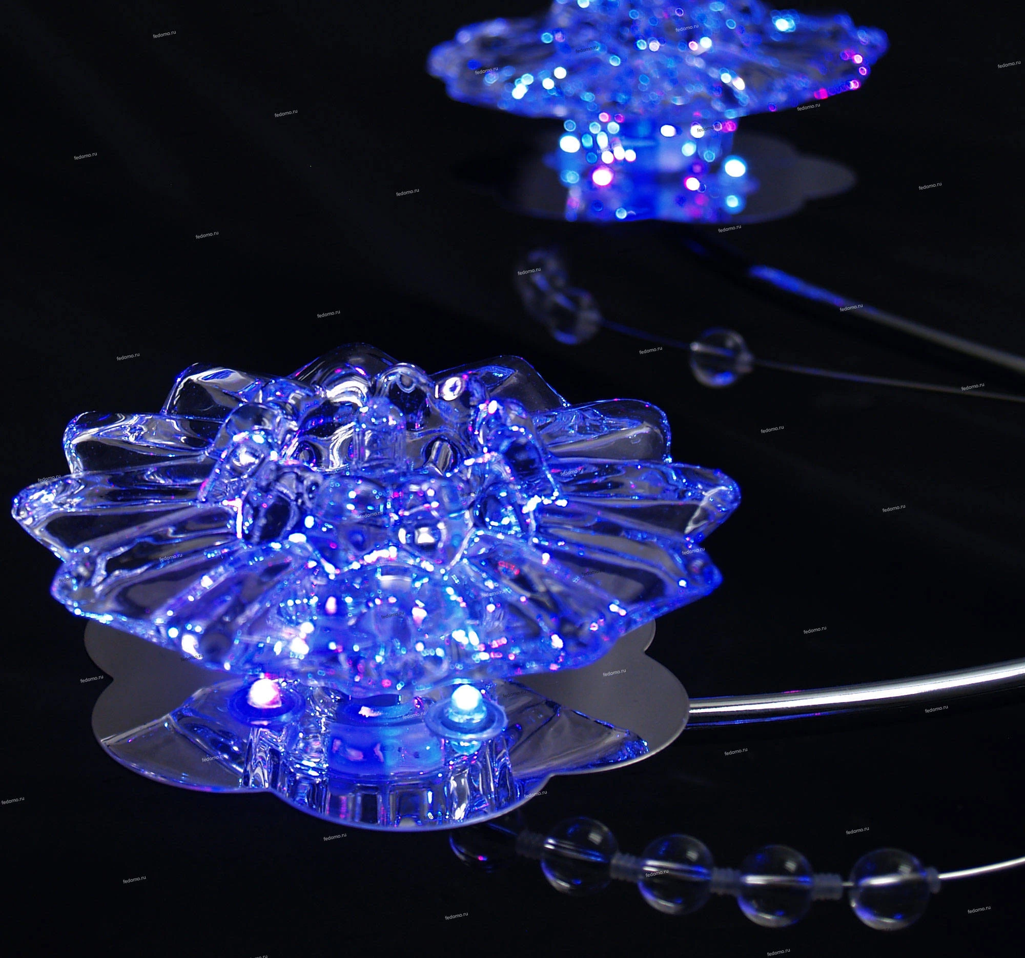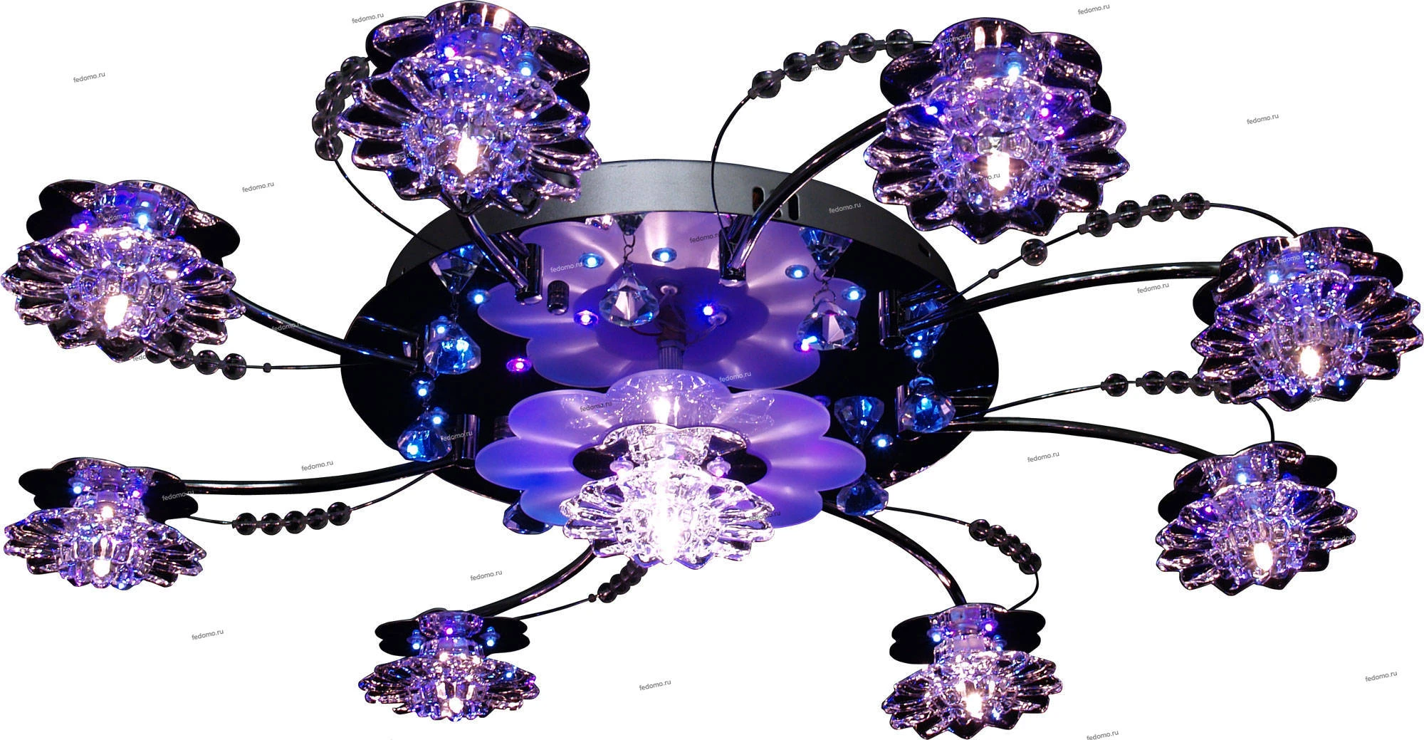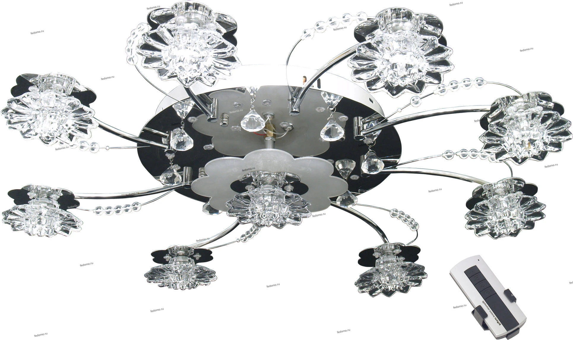 В комплект входят лампочки и пульт дистанционного управления. Люстра оснащена дополнительной светодиодной подсветкой.