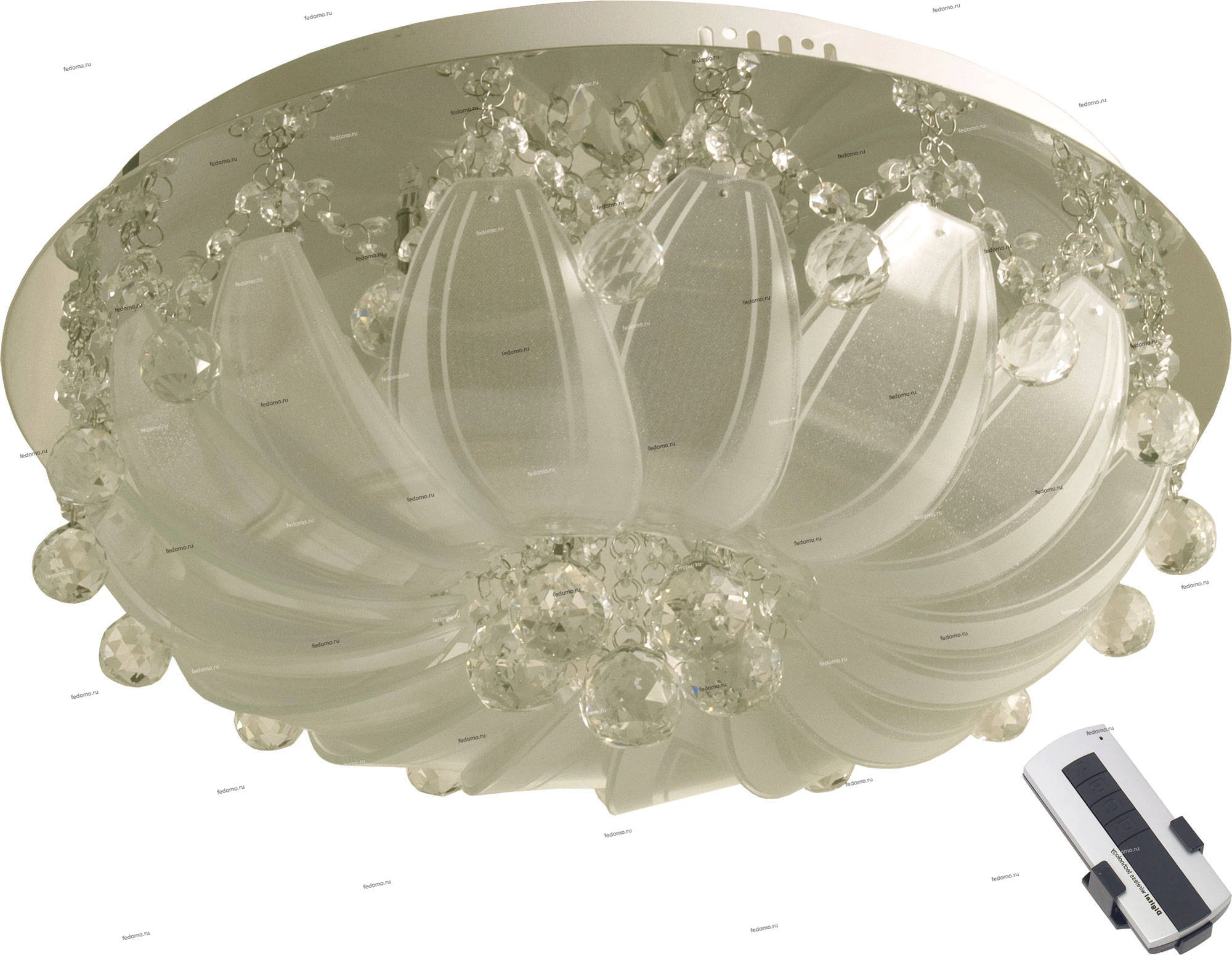 В комплект входят лампочки и пульт дистанционного управления. Люстра оснащена дополнительной светодиодной подсветкой.