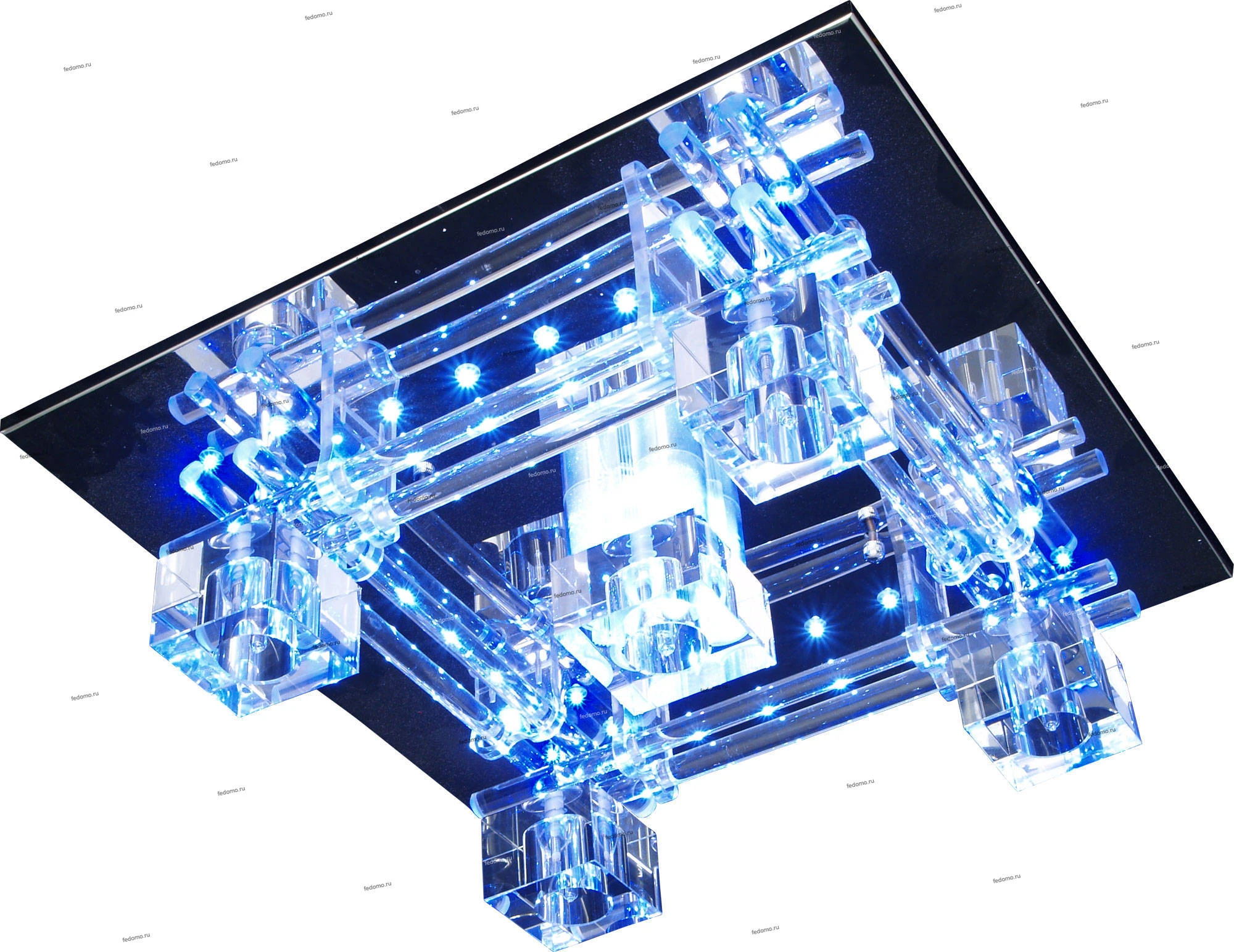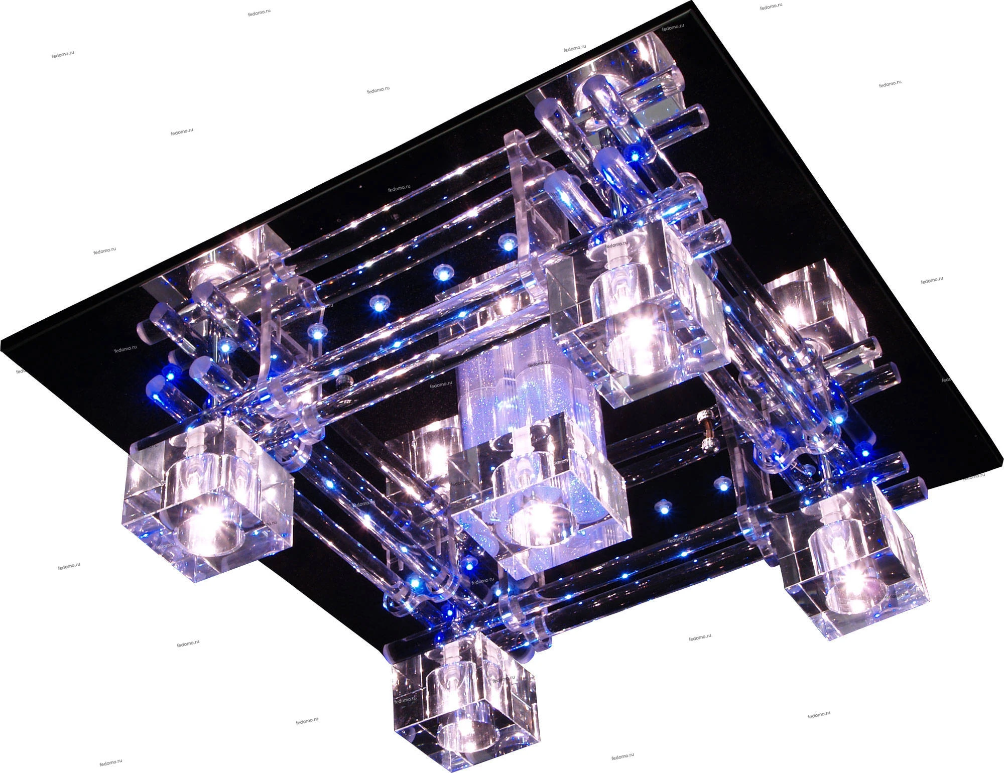 В комплект входят лампочки и пульт дистанционного управления. Галогеновая потолочная люстра с декоративной светодиодной подсветкой и пультом дистанционного управления. Люстра 2901809/5C работает в трех режимах свечения. Первый режим - режим свечения основной группы галогеновых ламп. Во втором режиме включается светодиодная подсветка синего цвета. Третий режим - комбинированный, сочетает в себе свет галогеновых лампочек и светодиодов. Наличие пульта дистанционного управления делает эксплуатацию люстры 2901809/5C приятной и удобной.
