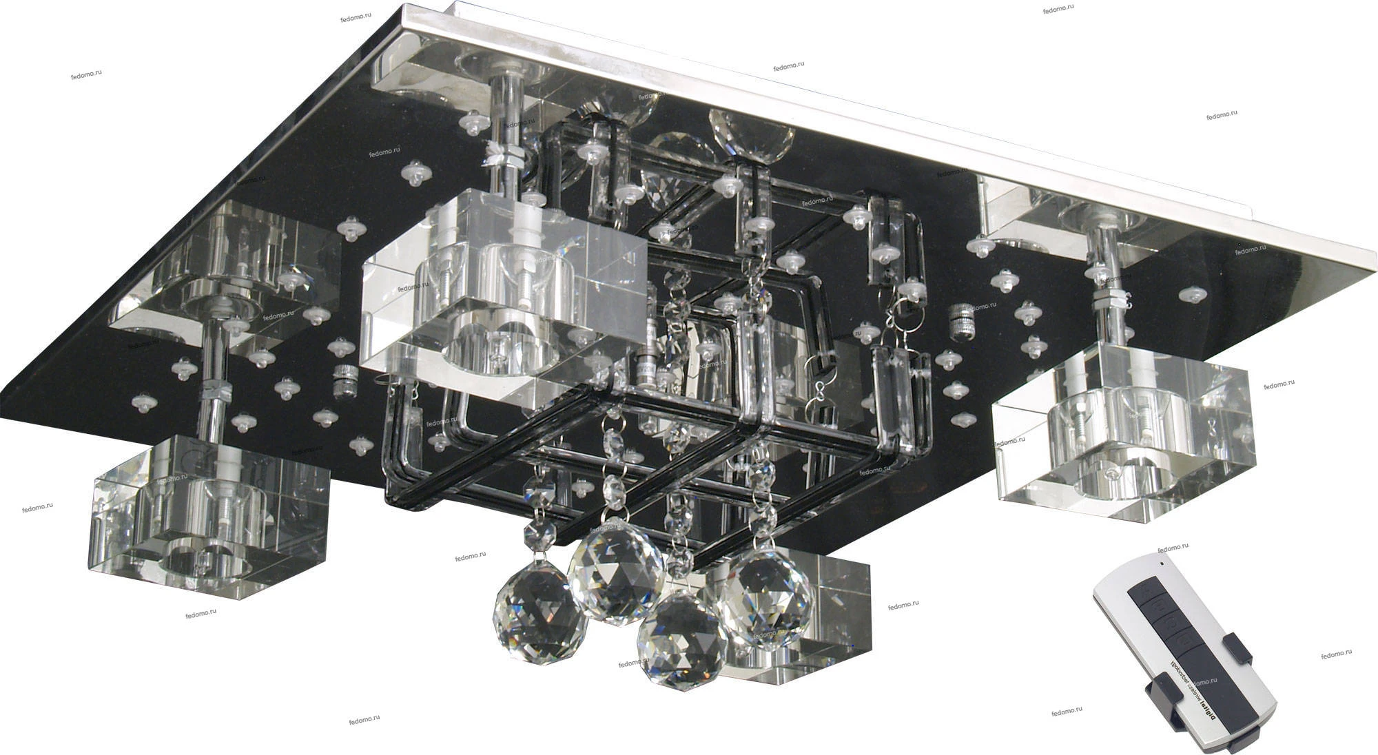 В комплект входят лампочки и пульт дистанционного управления. Люстра оснащена дополнительной светодиодной подсветкой.