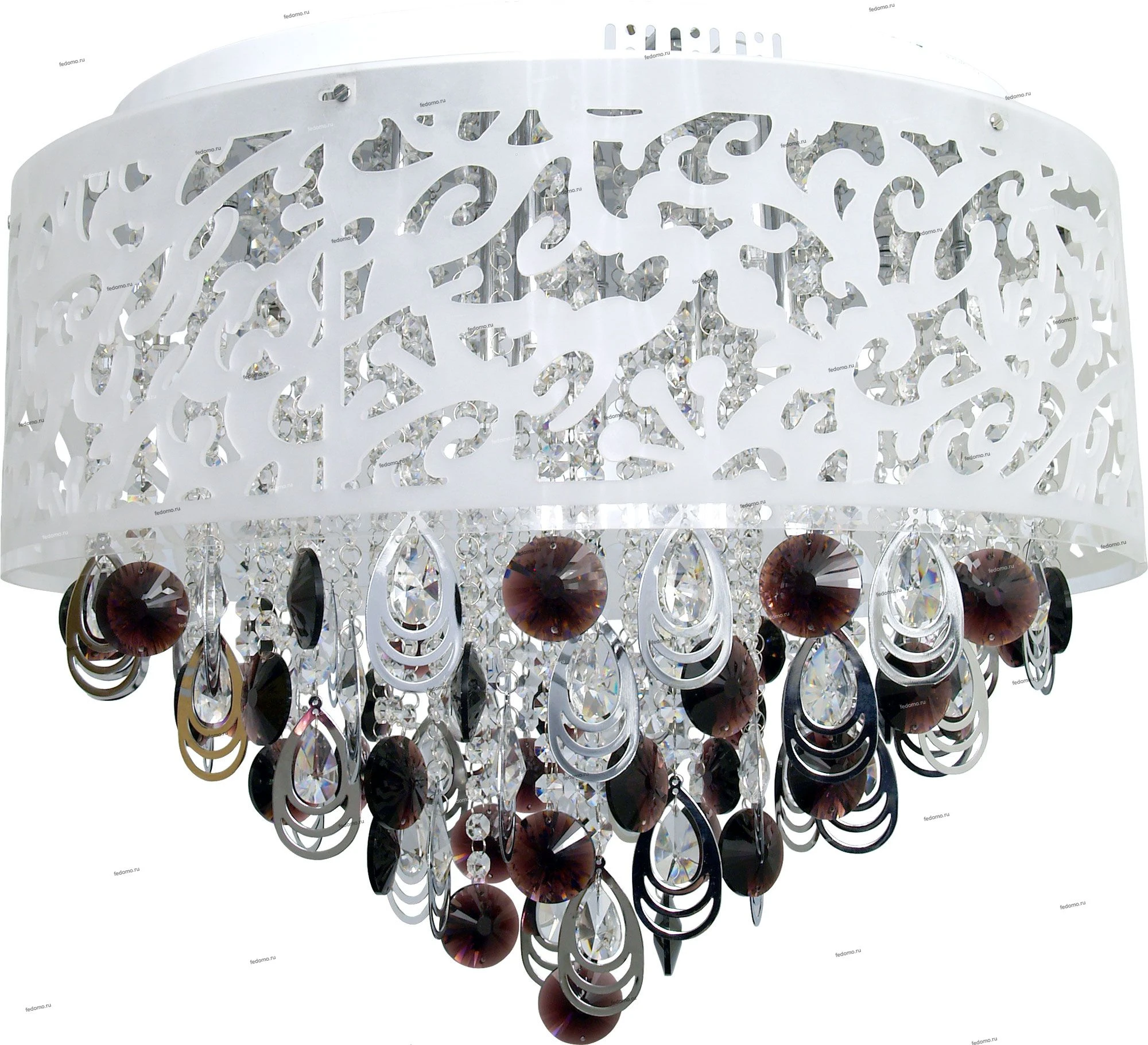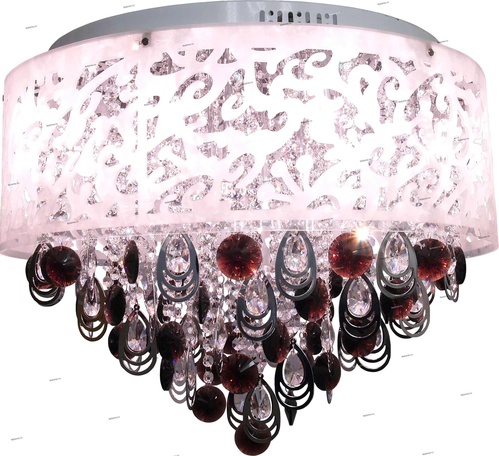 В комплект входят лампочки и пульт дистанционного управления. Люстра оснащена дополнительной светодиодной подсветкой. Четыре варианта постветки: синий, белый, двойной белый и комбинированный. Плафон выполнен из пластика.