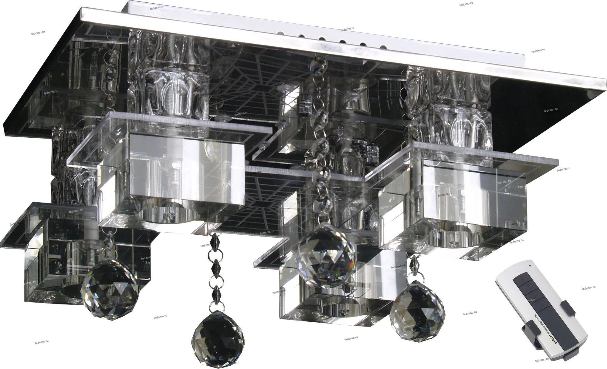 В комплект входят лампочки и пульт дистанционного управления. Люстра оснащена дополнительной светодиодной подсветкой.