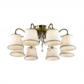 Материалы исполнения плафон: ткань, арматура: металл, декор: хрусталь. Цвет арматуры бронзовый. Плафон в цвете: бежевый. Декор подвеска, материал декора хрусталь, цвет прозрачный. Люстра 2915/8С серии Solera выполнена в бронзовом цвете. Светлый тканевый абажур потолочной люстры украшен ажурным рисунком, декоративные элементы выполнены в виде хрустальных подвесок. Цоколь Е14. Мощность 8х40W. Нет ламп в комплекте. Наименование 2915/8C LN18 178 бронзовый/абажур ткань/подвески хрусталь Люстра потолочная E14 8*40W 220V SOLERA.