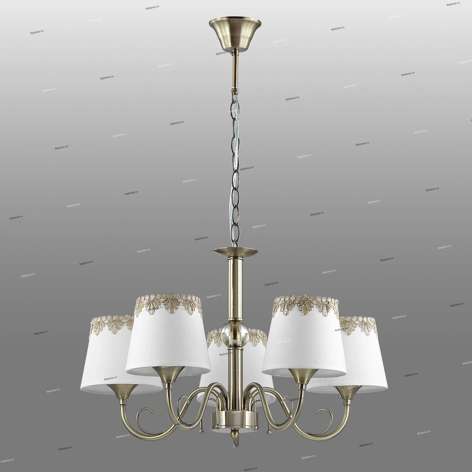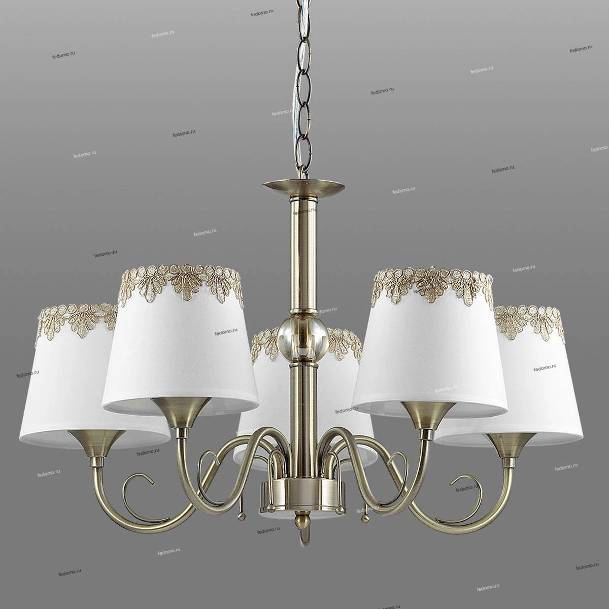 Материалы исполнения арматура, декор: металл, центральная штанга украшена декоративным стеклянным элементомв форме шара; плафон: тканевый абажур, украшенный кружевной тесьмой. Цвет арматуры бронзовый. Плафон в цвете: белый. Люстра 2998/5 серии Placida оформлена в классическом стиле. Люстра состоит из тканевых абажуров, украшенных кружевной тесьмой, и бронзовой арматуры со стеклянным декоративным элементом на центральной штанге. Элегантная сдержанность - вот главное отличие данной модели. Цоколь Е14. Мощность 5x40W. Нет ламп в комплекте. Наименование 2998/5 LN16 164 бронзовый/декор. стекло/ткань Люстра Е14 5*40W 220V PLACIDA.