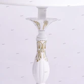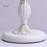 Арматура настольной лампы выполнена из комбинации сплавов металлов и обработана по технологии ручного окрашивания: основной защитный слой белого матового цвета, затем вручную окрашены выступающие части орнамента. Основание светильника выполнено из сплав