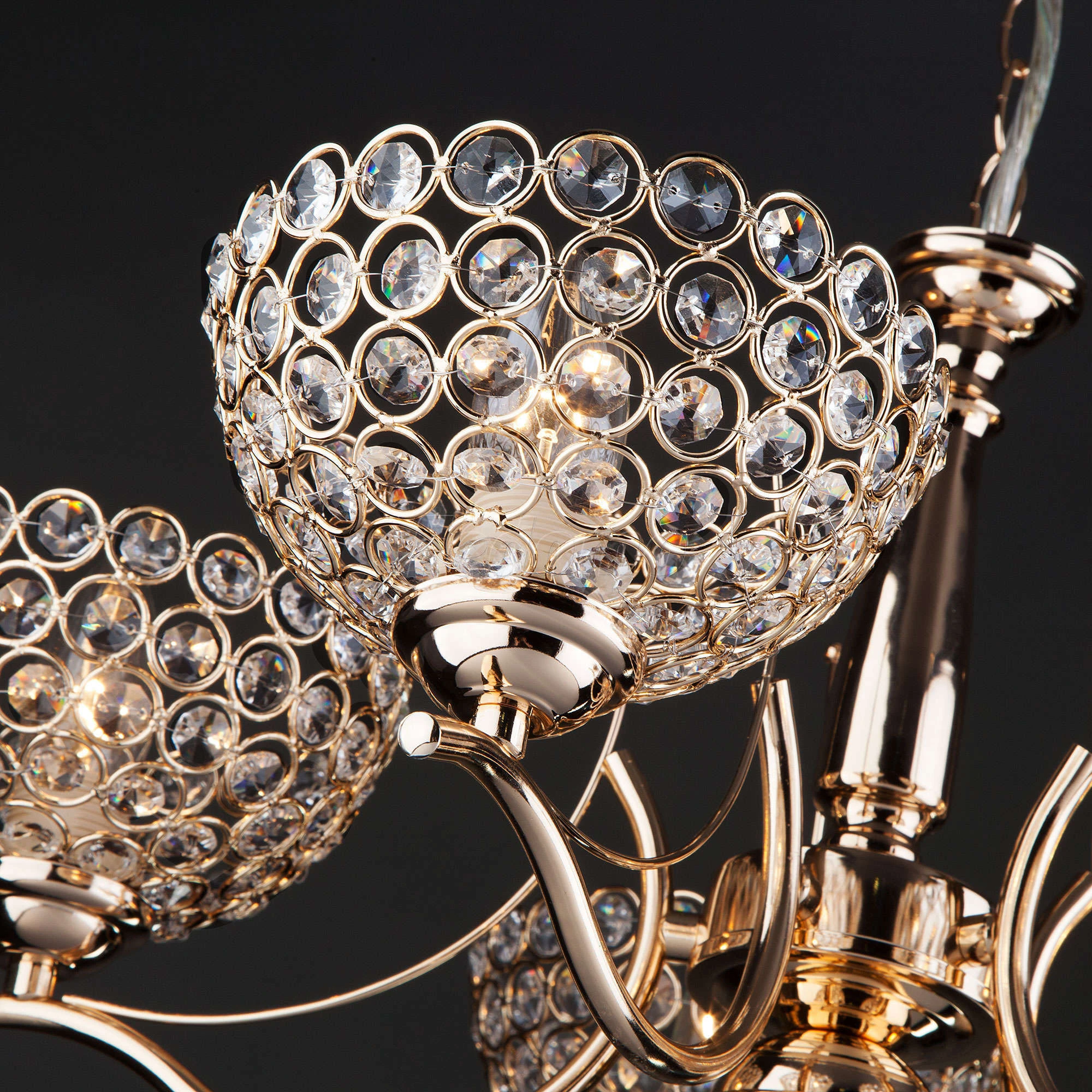 Люстра подвесная 30119/5 золото из серии Mirage от компании Eurosvet регулируется по высоте и устанавливается на монтажную пластину. Классическая люстра прекрасно подойдет в качестве источника основного света для гостиной, кухни. Основной цвет модели - золото, материал арматуры - металл. Люстра имеет 5 плафонов со свечением вверх, материал изготовления - глянцевое стекло, металл. Модель оснащена цоколем E27 (5xE27), имеет 5 лампочек с общей мощностью 300W и напряжением 230V. Светильник поддерживает подключение диммера. Габариты: длина - 560 мм, ширина - 560 мм. Лампочки в комплект не входят. Лучшая цена и условия доставки на Eurosvet 30119/5 золото в интернет-магазине Fedomo.ru.