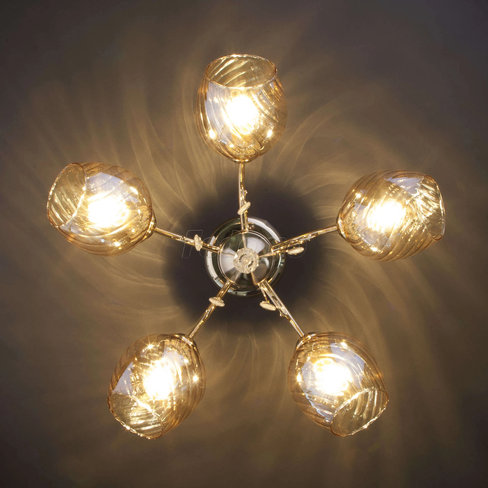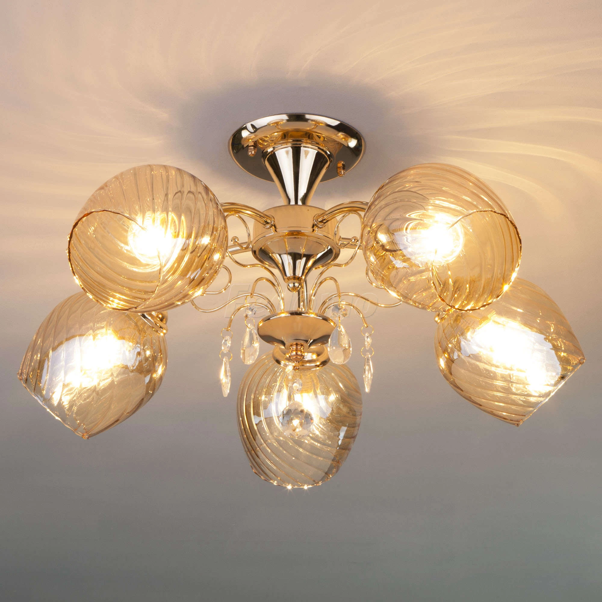 Люстра потолочная 30120/5 золото из серии Gina от компании Eurosvet устанавливается на монтажную пластину. Люстра украшена хрусталем и прекрасно подойдет в качестве источника основного света для гостиной, спальни, кухни, оформленных в стиле модерн. Основной цвет модели - янтарный, материал арматуры - металл. Люстра имеет 5 плафонов со свечением вниз, материал изготовления - глянцевое стекло. Модель оснащена цоколем E27 (5xE27), имеет 5 лампочек с общей мощностью 300W и напряжением 230V. Светильник поддерживает подключение диммера. Габариты: длина - 520 мм, ширина - 520 мм, высота - 280 мм. Лампочки в комплект не входят. Лучшая цена и условия доставки на Eurosvet 30120/5 золото в интернет-магазине Fedomo.ru.