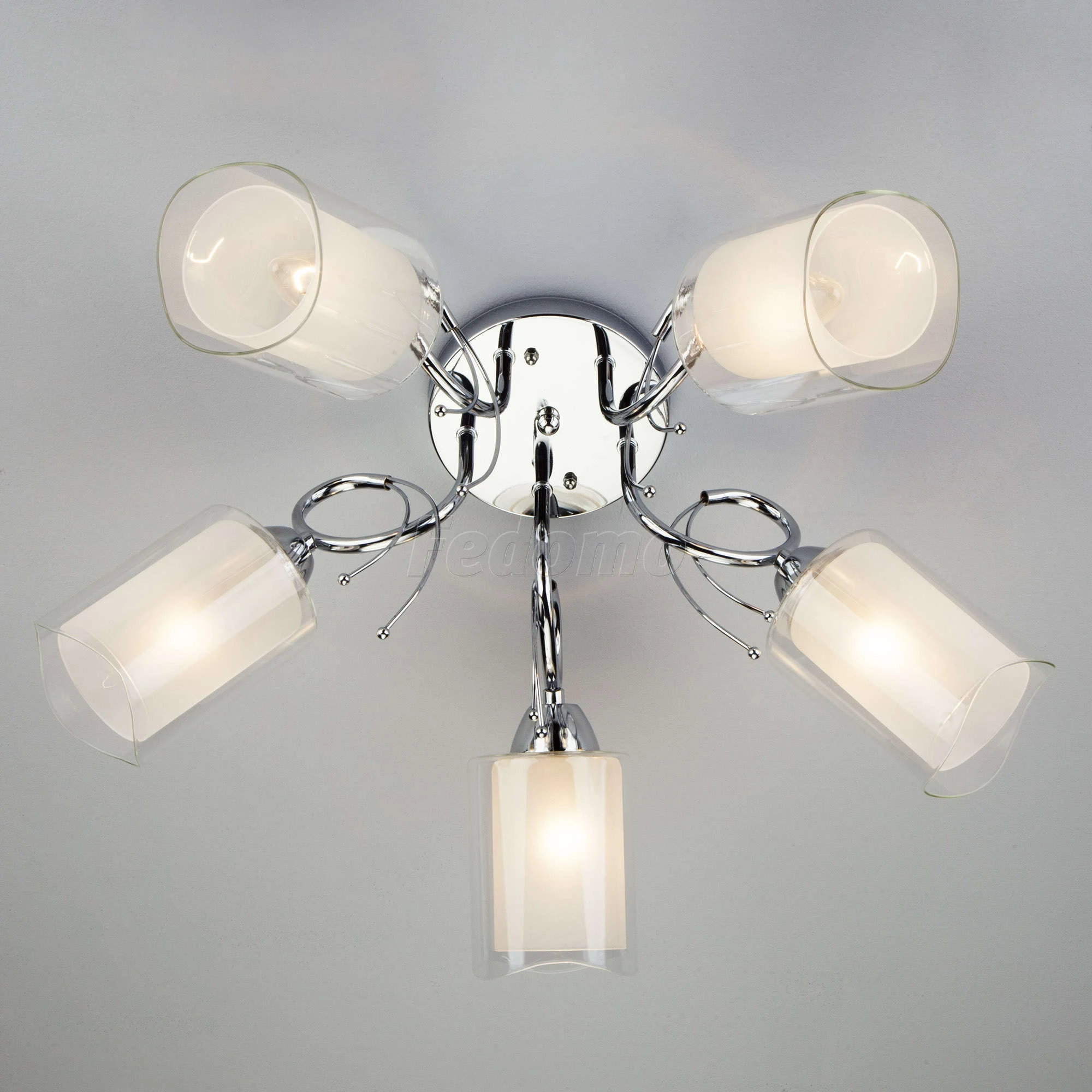 Люстра потолочная 30122/5 хром из серии Renee от компании Eurosvet устанавливается на монтажную пластину. Современная люстра прекрасно подойдет в качестве источника основного света для гостиной, спальни, кухни, оформленных в стиле модерн. Основной цвет модели - белый, материал арматуры - металл. Люстра имеет 5 плафонов со свечением вниз, материал изготовления - стекло. Модель оснащена цоколем E27 (5xE27), имеет 5 лампочек с общей мощностью 300W и напряжением 230V. Светильник поддерживает подключение диммера. Габариты: длина - 580 мм, ширина - 580 мм, высота - 250 мм. Лампочки в комплект не входят. Лучшая цена и условия доставки на Eurosvet 30122/5 хром в интернет-магазине Fedomo.ru.