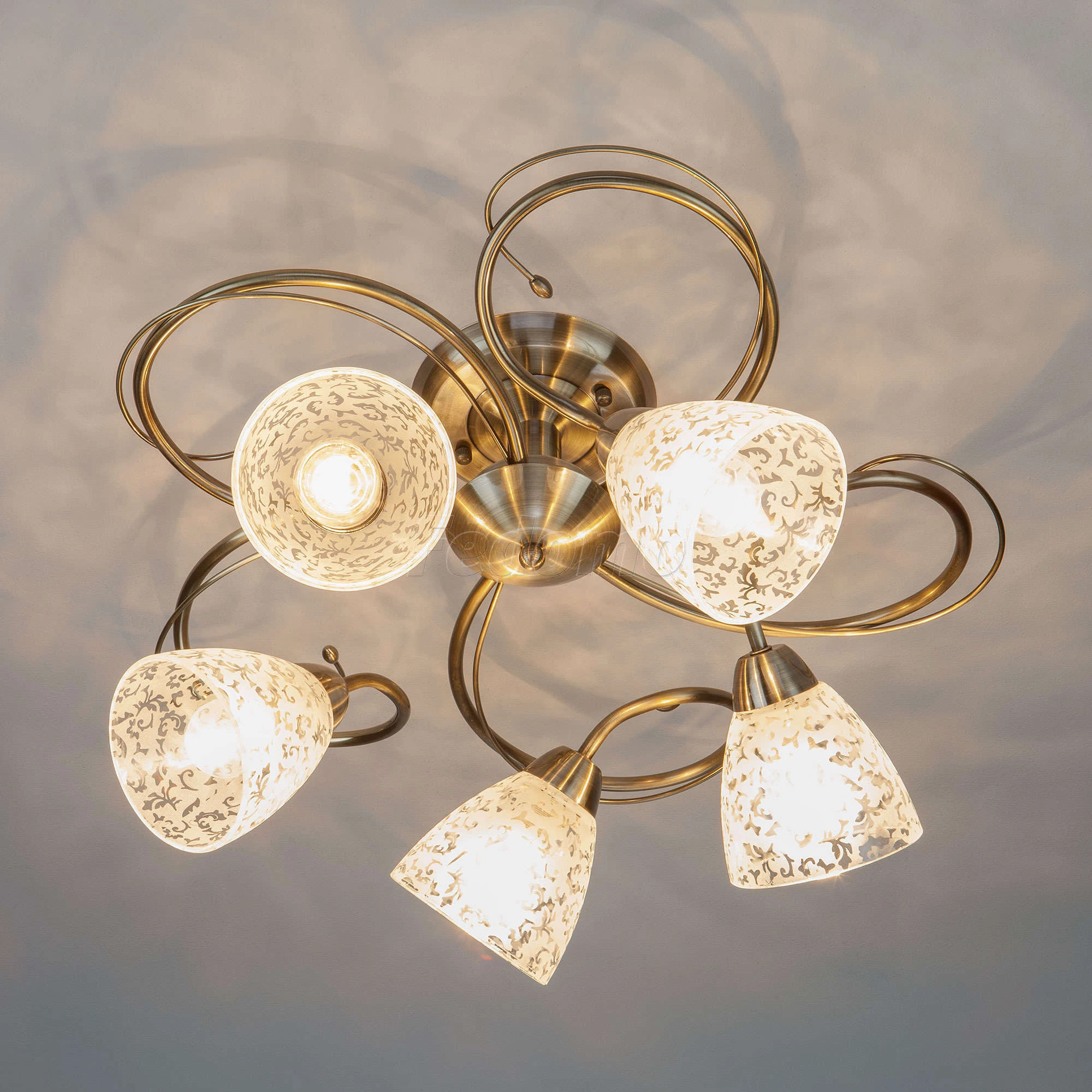 Люстра потолочная 30130/5 античная бронза из серии Natalie от компании Eurosvet устанавливается на монтажную пластину. Люстра прекрасно подойдет в качестве источника основного света для гостиной, спальни, кухни, оформленных в стиле модерн. Основной цвет модели - белый, материал арматуры - металл. Люстра имеет 5 плафонов со свечением вниз, материал изготовления - матовое стекло. Модель оснащена цоколем E14 (5xE14), имеет 5 лампочек с общей мощностью 300W и напряжением 230V. Светильник поддерживает подключение диммера. Габариты: длина - 520 мм, ширина - 520 мм, высота - 220 мм. Лампочки в комплект не входят. Лучшая цена и условия доставки на Eurosvet 30130/5 античная бронза в интернет-магазине Fedomo.ru.