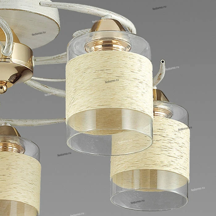 Материалы исполнения арматура, декор: металл; плафон: прозрачное стекло, украшенное декоративной намоткой из нити бежевого цвета. Цвет арматуры белый. Плафон в цвете: прозрачный. Декор декоративная нить. Люстра потолочная 3029/5C серии Filla оформлена в современном стиле. Люстра состоит из прозрачных плафонов циллиндрической формы, украшенных декоративной намоткой из нити молочного цвета, и арматуры цвета золото/белый с золотой патиной. Данная модель не теряет актуальность уже несколько сезонов и смотрится очень современно. Цоколь E27. Мощность 5x60W. Нет ламп в комплекте. Наименование 3029/5C LN16 127 золото/беж/стекло/декор.тесьма Люстра потолочная E27 5*60W 220V FILLA.