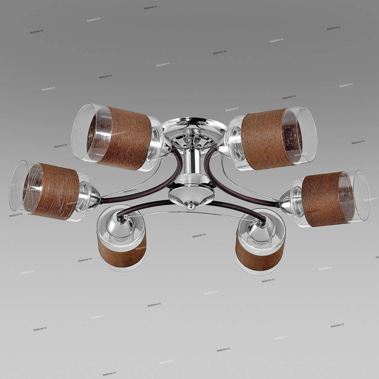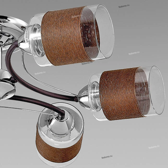 Материалы исполнения арматура, декор: металл; плафон: прозрачное стекло, украшенное декоративной намоткой из нити цвета кофе. Цвет арматуры коричневый. Плафон в цвете: прозрачный. Декор декоративная нить. Люстра потолочная 3030/6C серии Filla оформлена в современном стиле. Люстра состоит из прозрачных плафонов циллиндрической формы, украшенных декоративной намоткой из нити цвета кофе, и арматуры цвета хром/кофе. Данная модель не теряет актуальность уже несколько сезонов и смотрится очень современно. Цоколь E27. Мощность 6x60W. Нет ламп в комплекте. Наименование 3030/6C LN16 128 хром/кофе/стекло/декор.тесьма Люстра потолочная E27 6*60W 220V FILLA.
