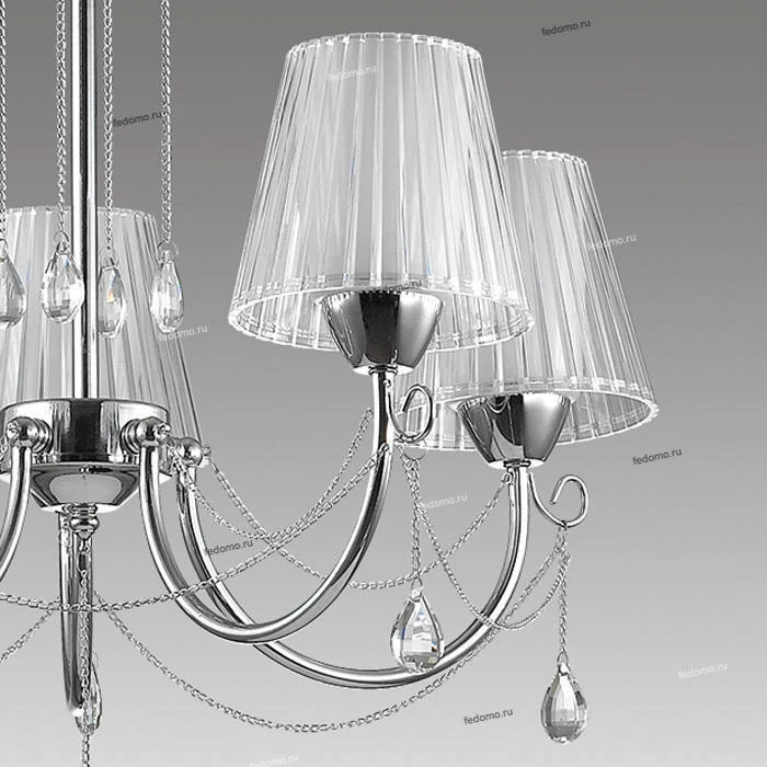 Материалы исполнения арматура, декор: металлические декоративные цепочки и подвески из хрусталя; плафон: двоной плафон из акрила (нижняя часть - матовая, верхняя - прозрачная гофрированная). Цвет арматуры хром. Плафон в цвете: прозрачный. Декор подвеска, материал декора хрусталь, цвет прозрачный. Люстра 3236/5 серии Odda оформлена в современном стиле. Люстра состоит из двойных элегантных акриловых плафонов и грациозной арматуры хромового цвета, обильно украшенной декоративными цепочками и подвесками из хрусталя.Данная модель обладает необычайной элегантностью и изысканностью. Цоколь E14. Мощность 5x40W. Нет ламп в комплекте. Наименование 3236/5 LN16 092 хром/акрил/цепочки/хрусталь Люстра E14 5*40W 220V ODDA.