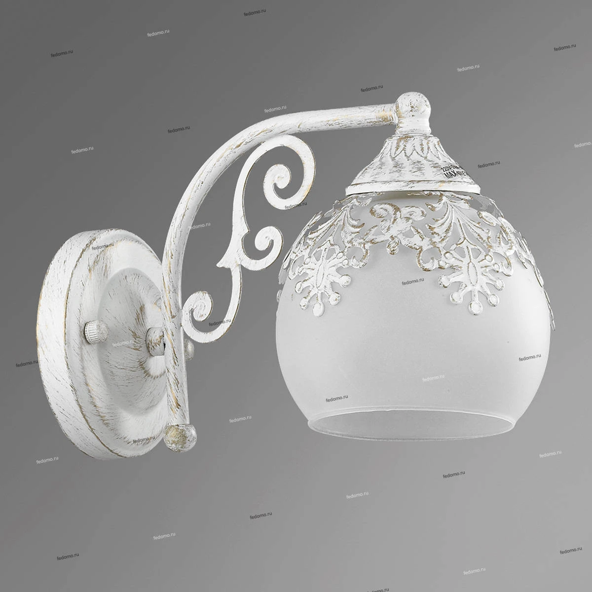 Материалы исполнения арматура, декор: металл; плафон: матовое стекло с ажурным металлическим декором. Цвет арматуры белый. Плафон в цвете: белый. Особенность: для использования со скрытой проводкой. Декор декоративная арматура, материал декора металл, цвет белый. Бра 3256/1W серии Tinetta оформлена в классическом стиле. Светильник состоит из матового стеклянного плафона с ажурным металлическим декором и арматуры белого с золотой патиной цвета, украшенной элегантными подвесками из хрусталя. Романтичность, нежность, милая красота, женственность и изящность - главные отличительные черты данной модели. Цоколь E14. Мощность 1x60W. Нет ламп в комплекте. Наименование 3256/1W LN16 175 белый/зол.патина/стекло/метал.декор/хрусталь Бра E14 60W 220V TINETTA.