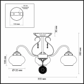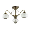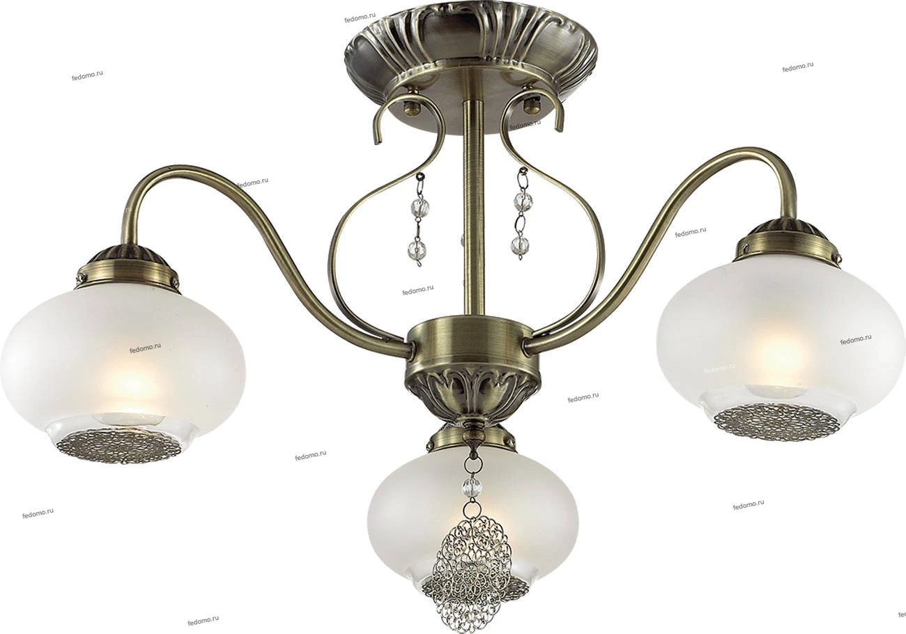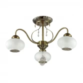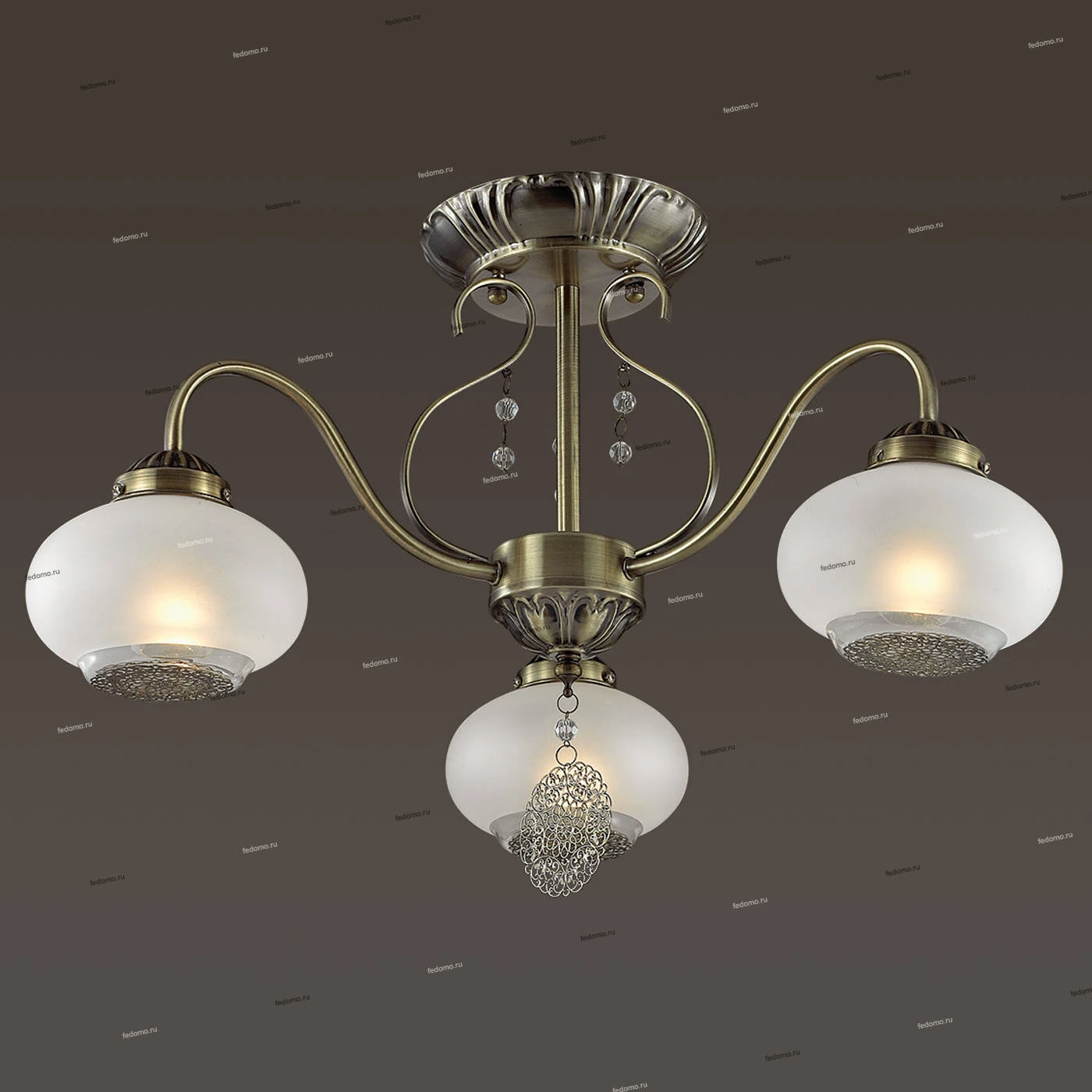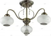 Материалы исполнения арматура, декор: металл, хрусталь; плафон: матовое стекло с с металлическим декором. Цвет арматуры бронзовый. Плафон в цвете: белый. Декор подвеска, материал декора хрусталь, цвет прозрачный. Elmina - функциональная, элегантная серия в бронзе. Крупный стеклянный сферический плафон из белого матового стекла, декорированный ажурной металлической плашкой дарит мягкий, рассеянный свет. Наименование 3287/3C LN17 158 бронзовый/стекло Люстра потолочная E14 3*40W 220V EMILINA.