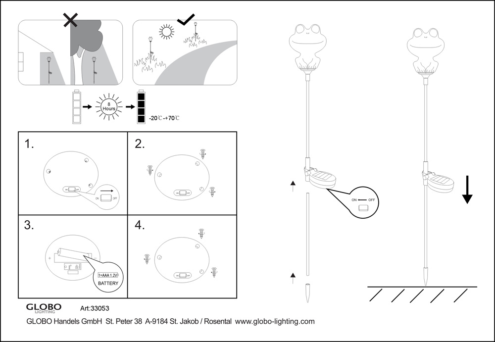 Наземный светильник 33053 из серии Solar от компании Globo украсит сад, выполненный в стиле флористика, Яркий. Основной цвет и материал изготовления - серый металл, материал плафона - пластик. Светодиодная модель с домиками с мощностью лампочки 0,06W, напряжением 3V имеет 1 плафон и 1 лампочку. Габариты изделия: ширина - 103 мм. Лучшая цена и условия доставки на Globo 33053 в интернет-магазине Fedomo.ru.